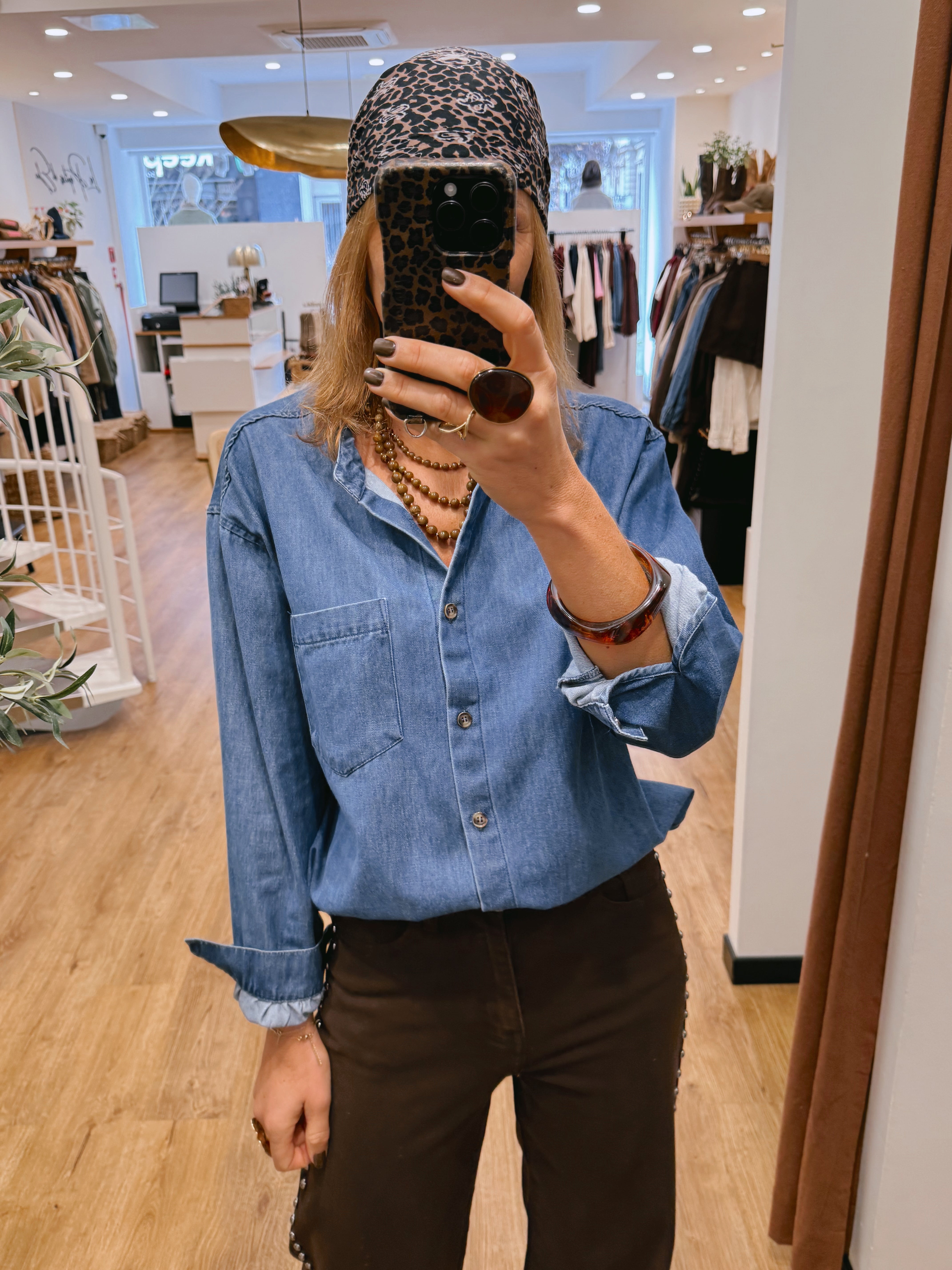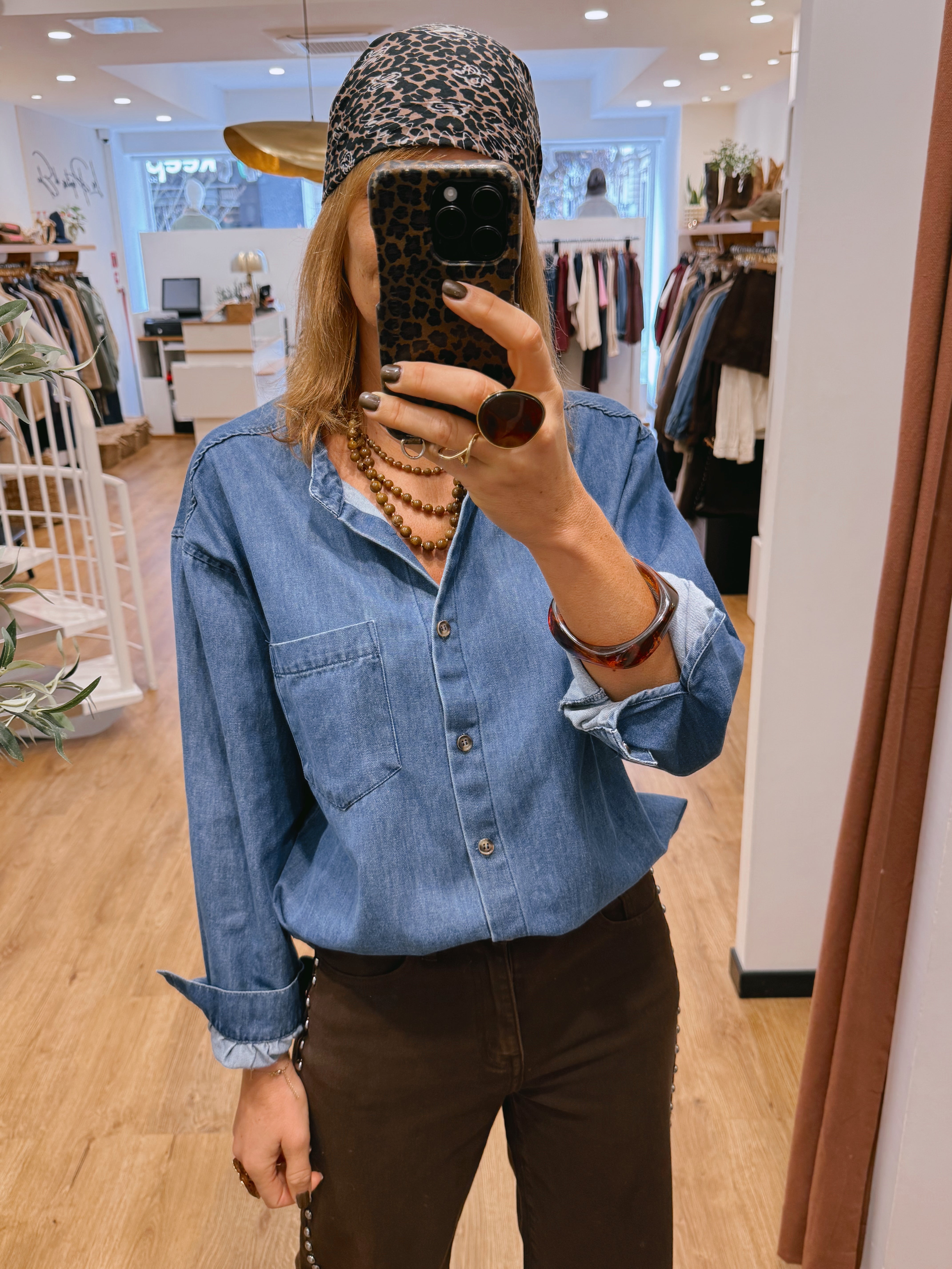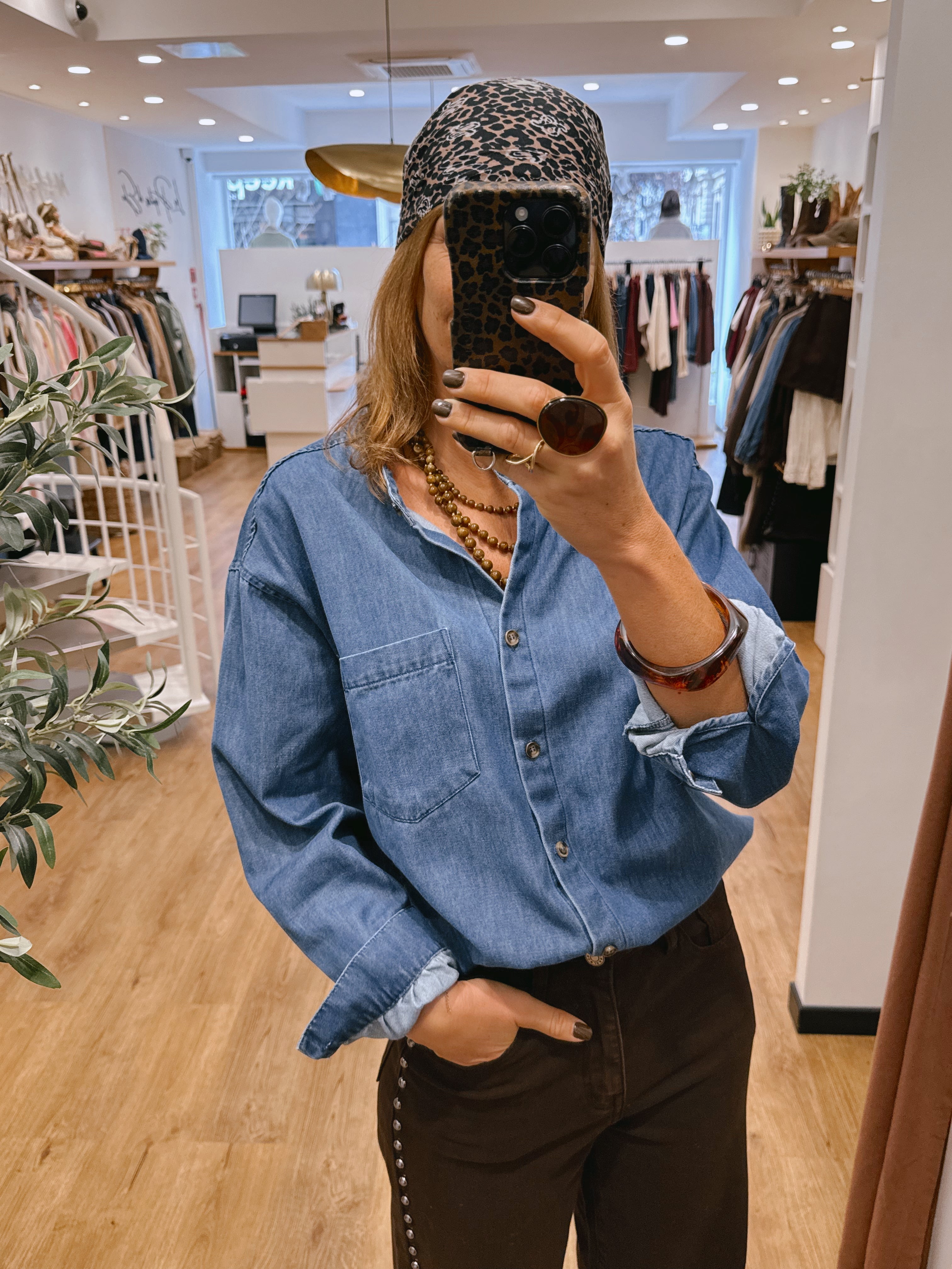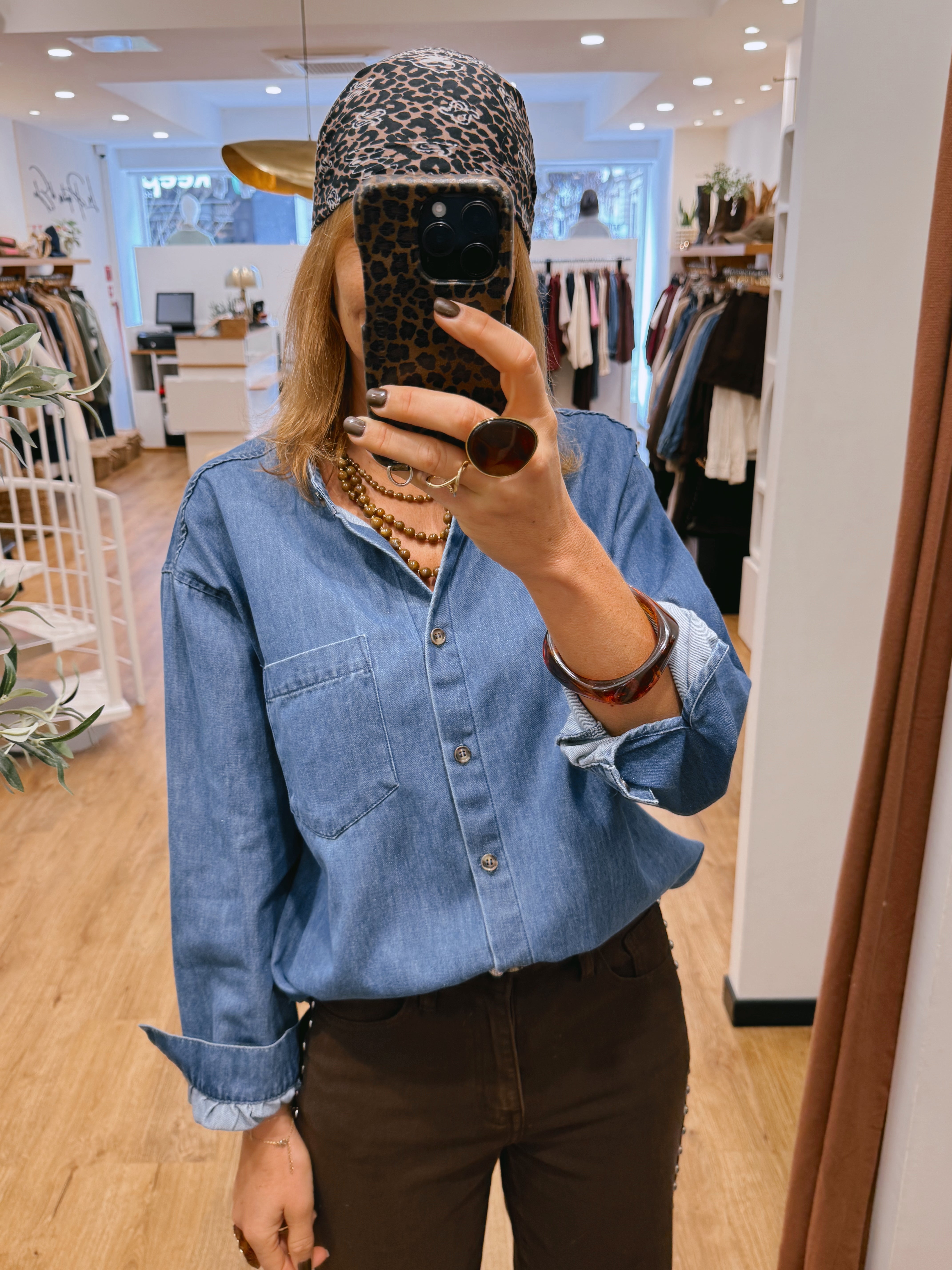 Chemise en jean bleu clair, coupe droite et confortable