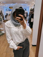 À porter seule pour un look mode et affirmé, ou sous un manteau pour un effet plus discret. Elle s’accorde parfaitement avec un manteau oversize, une veste en cuir ou un pull