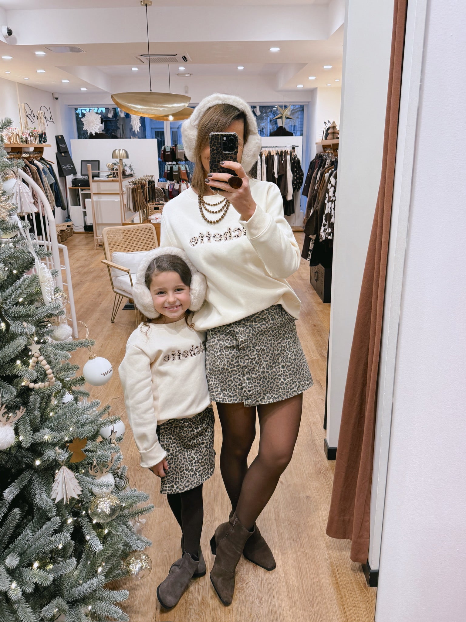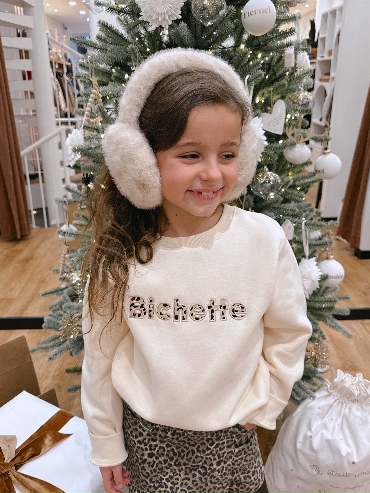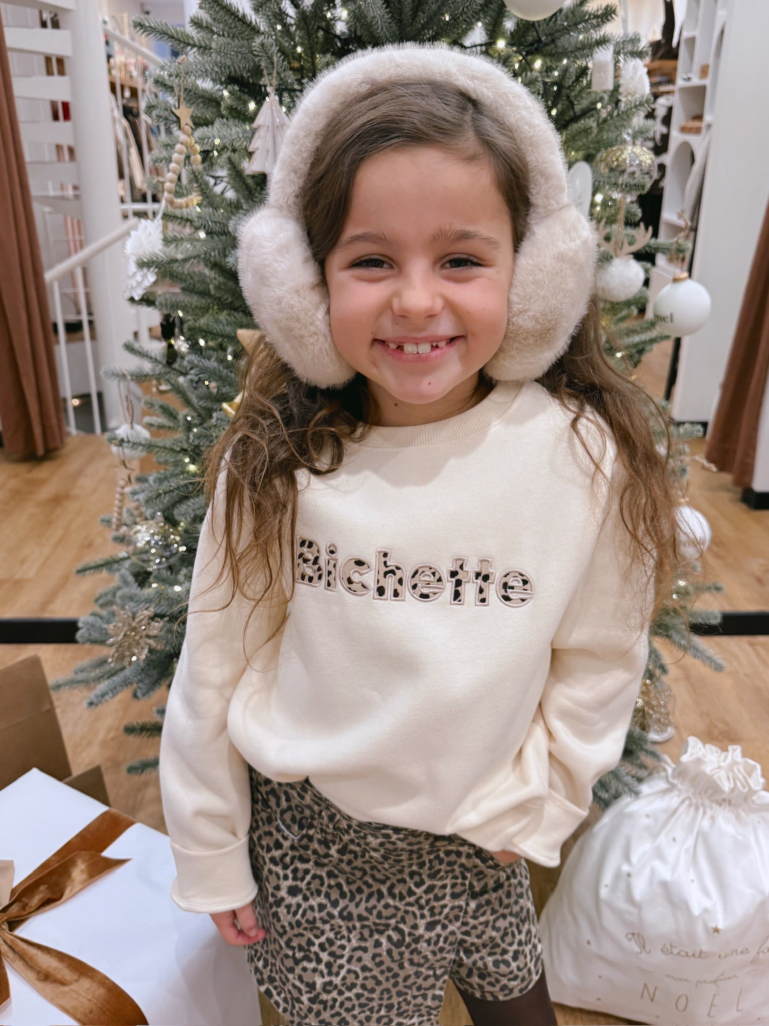 Message "bichette" en sérigraphie peluche léopard sur le devant