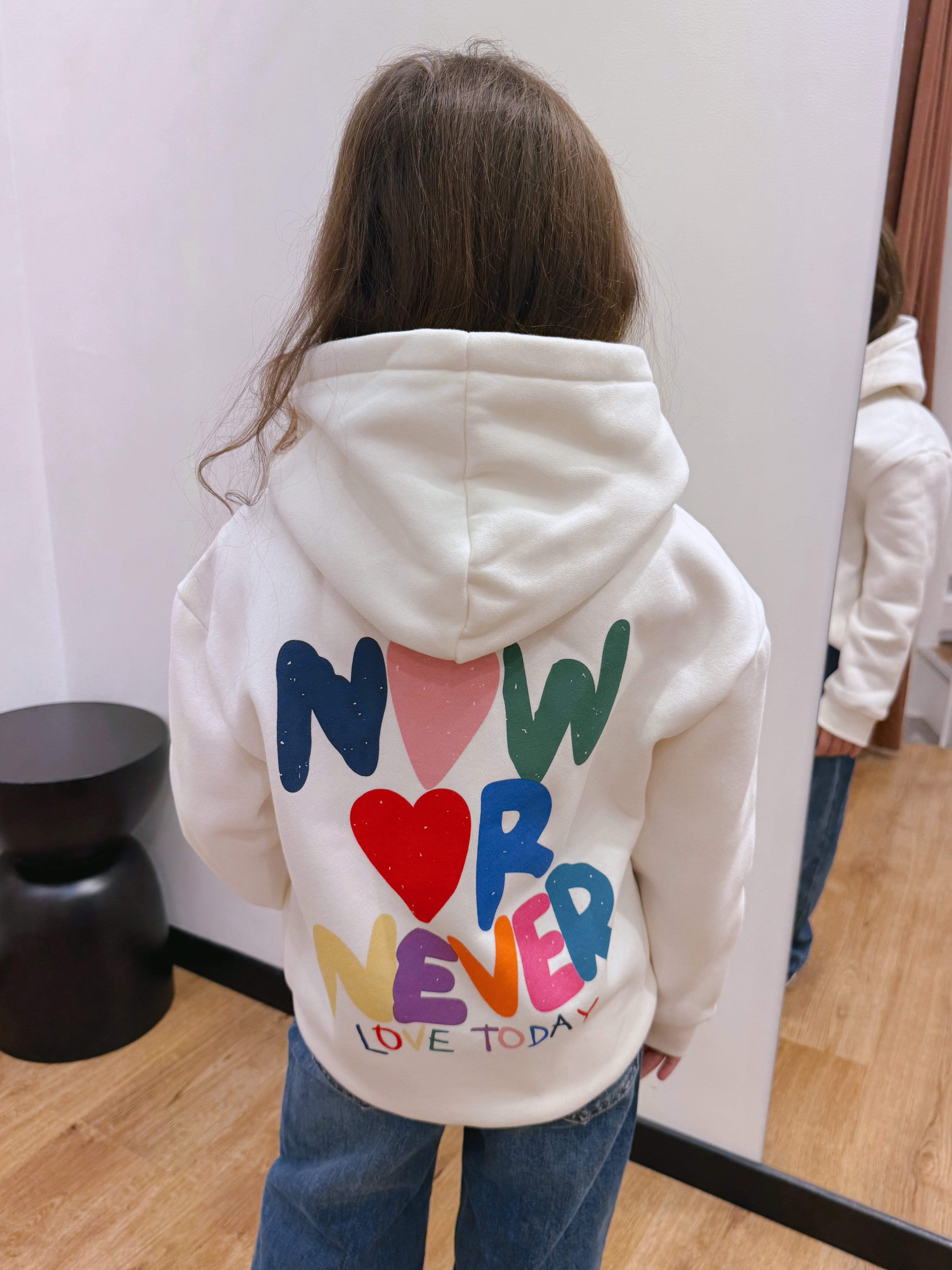 Dos imprimé coloré avec message " now or never"