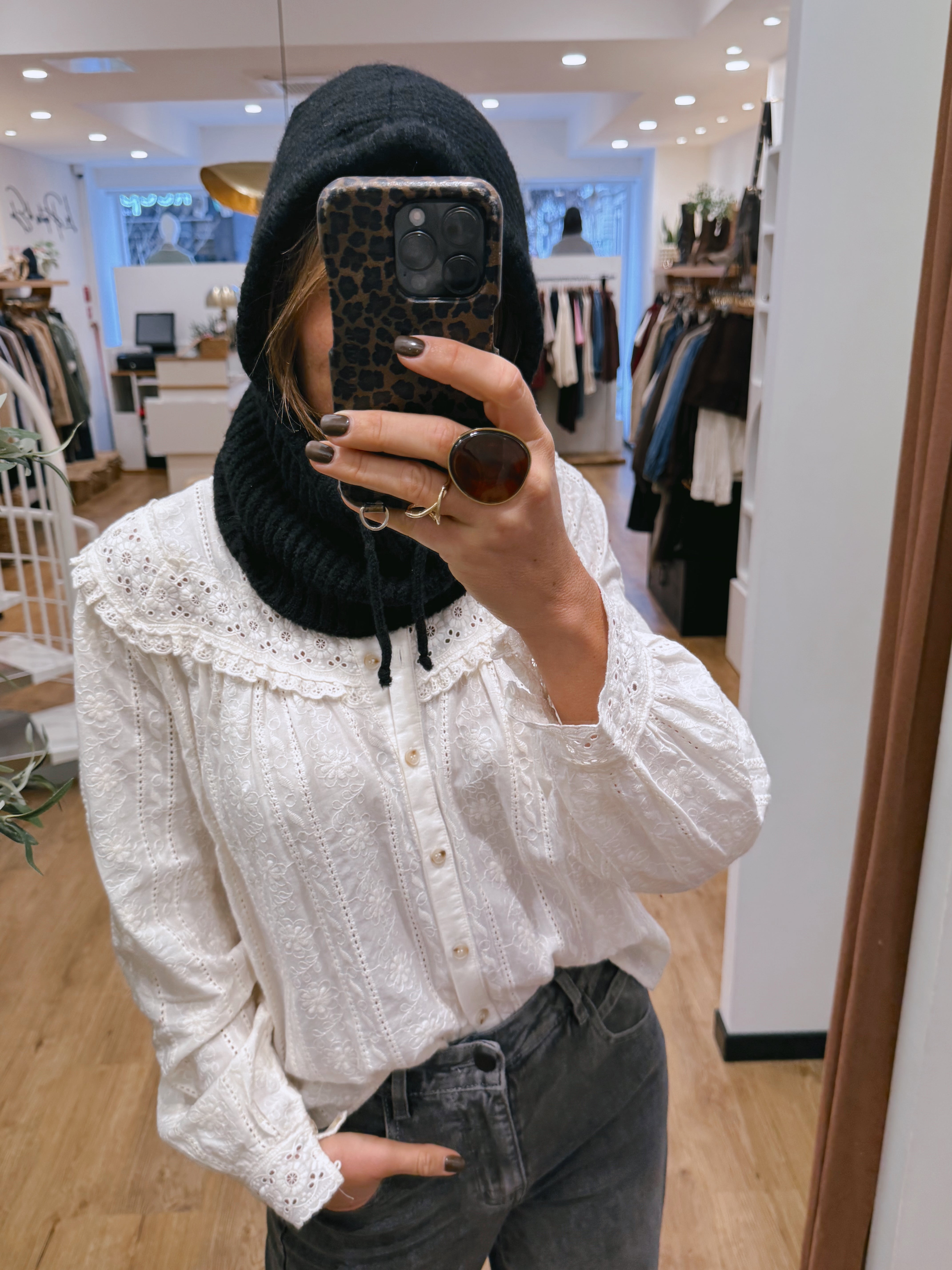 À porter seule pour un look mode et affirmé, ou sous un manteau pour un effet plus discret. Elle s’accorde parfaitement avec un manteau oversize, une veste en cuir ou un pull