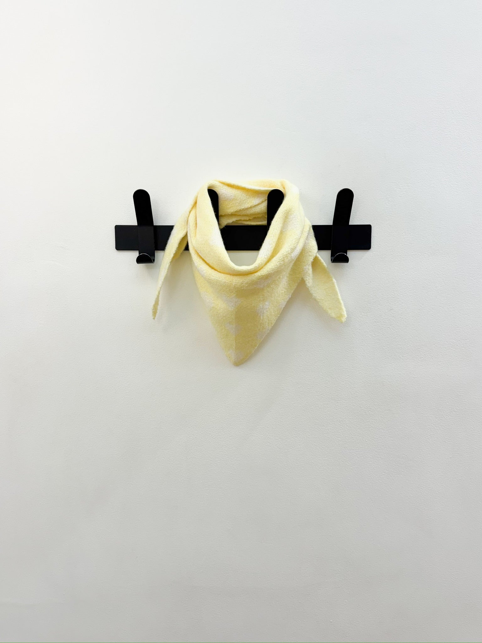 Petite écharpe triangle petit coeur avec laine avec 80 % viscose et 20 % laine de dimension 105cm x 35 x 65cm.