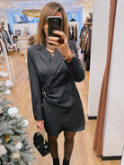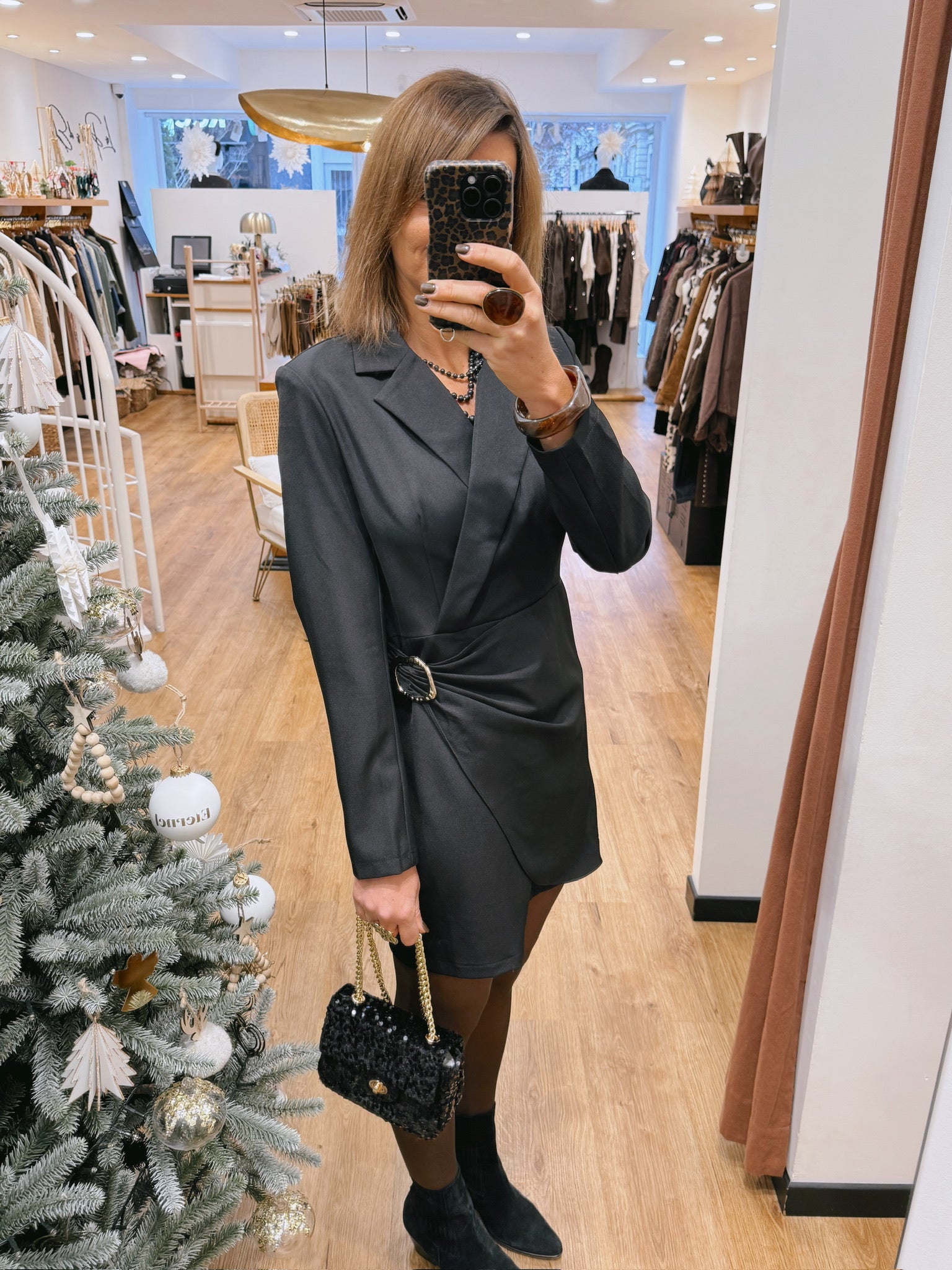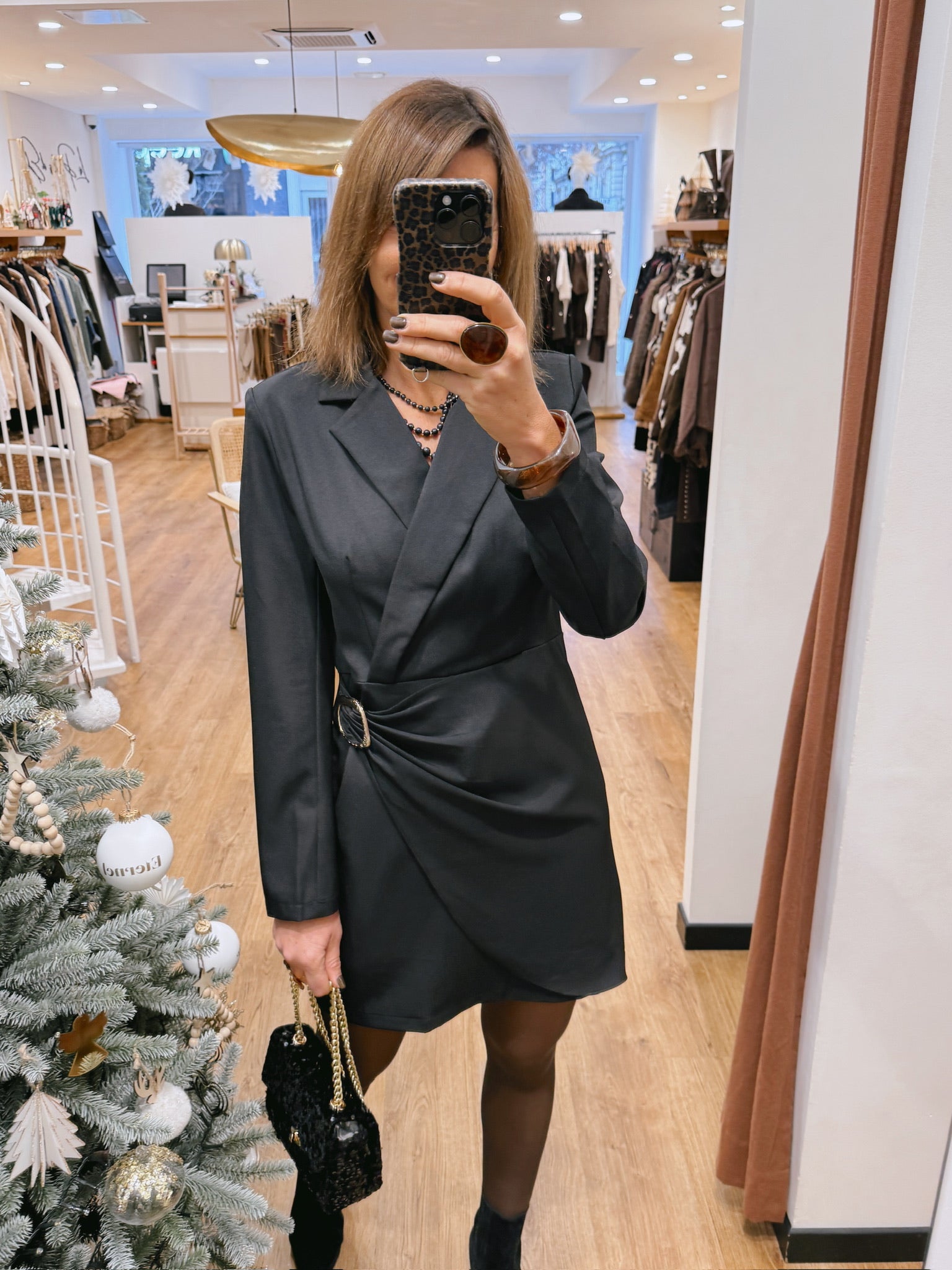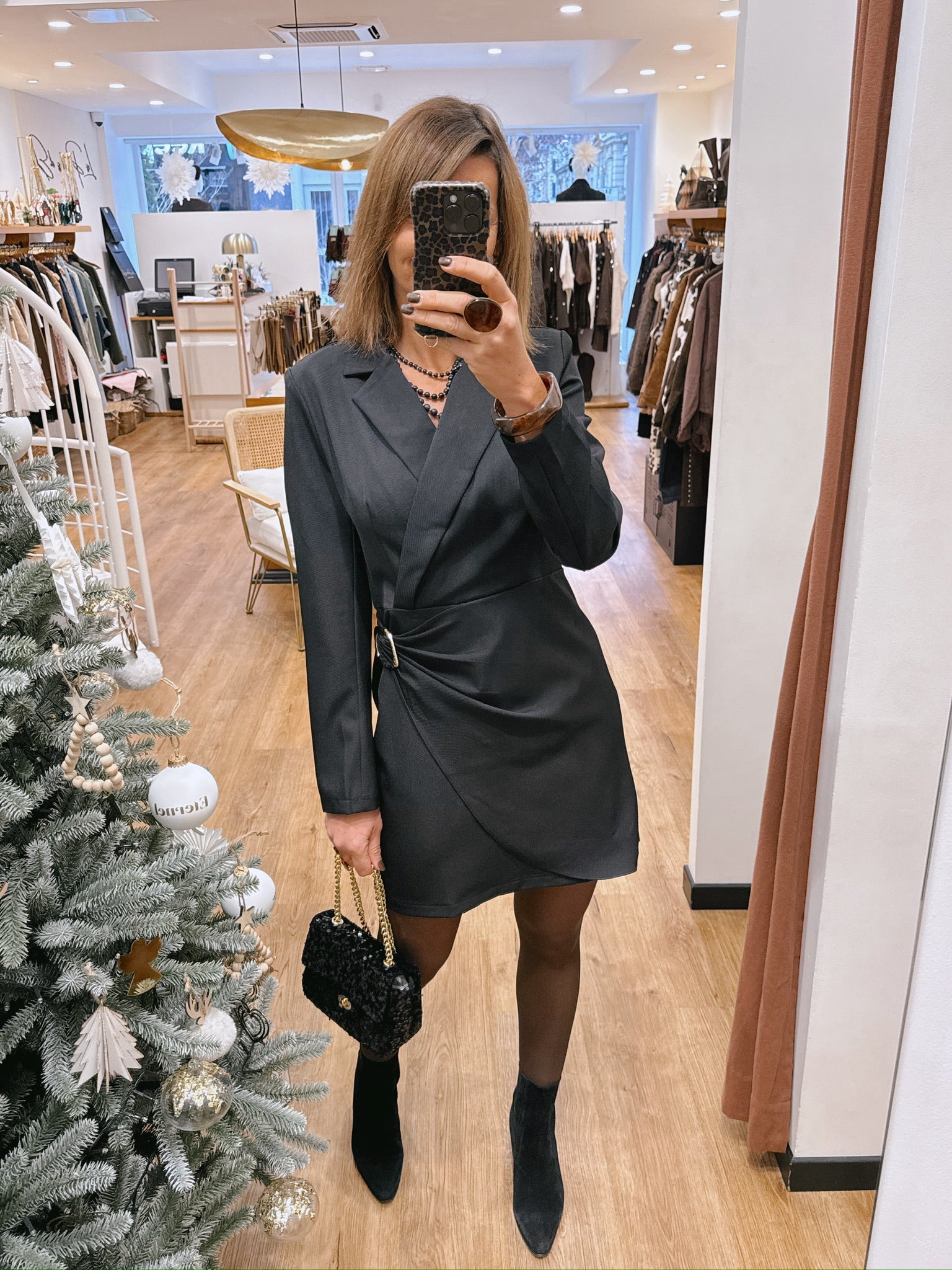 Coupe portefeuille élégante avec un drapé latéral qui affine la taille.