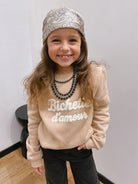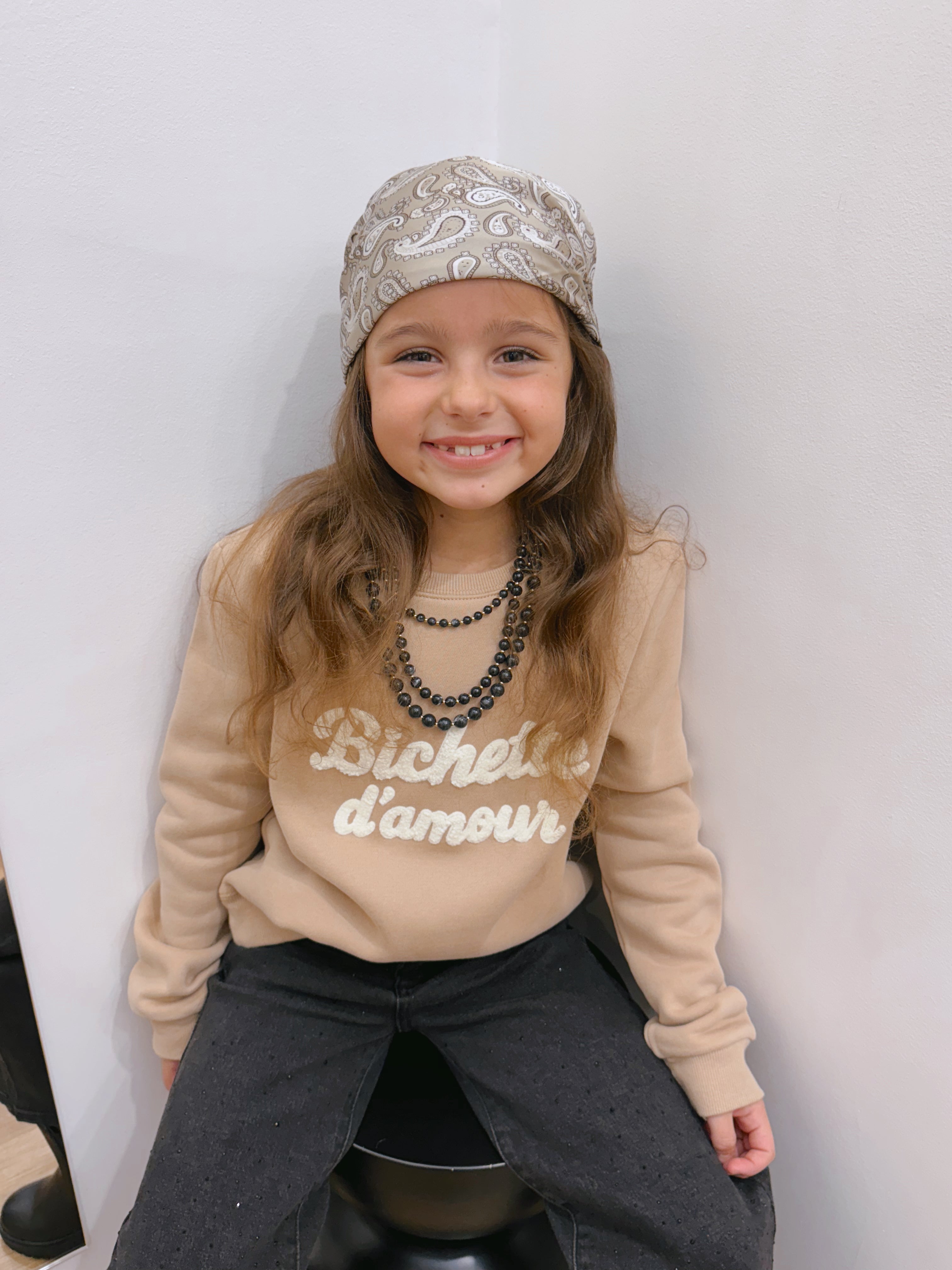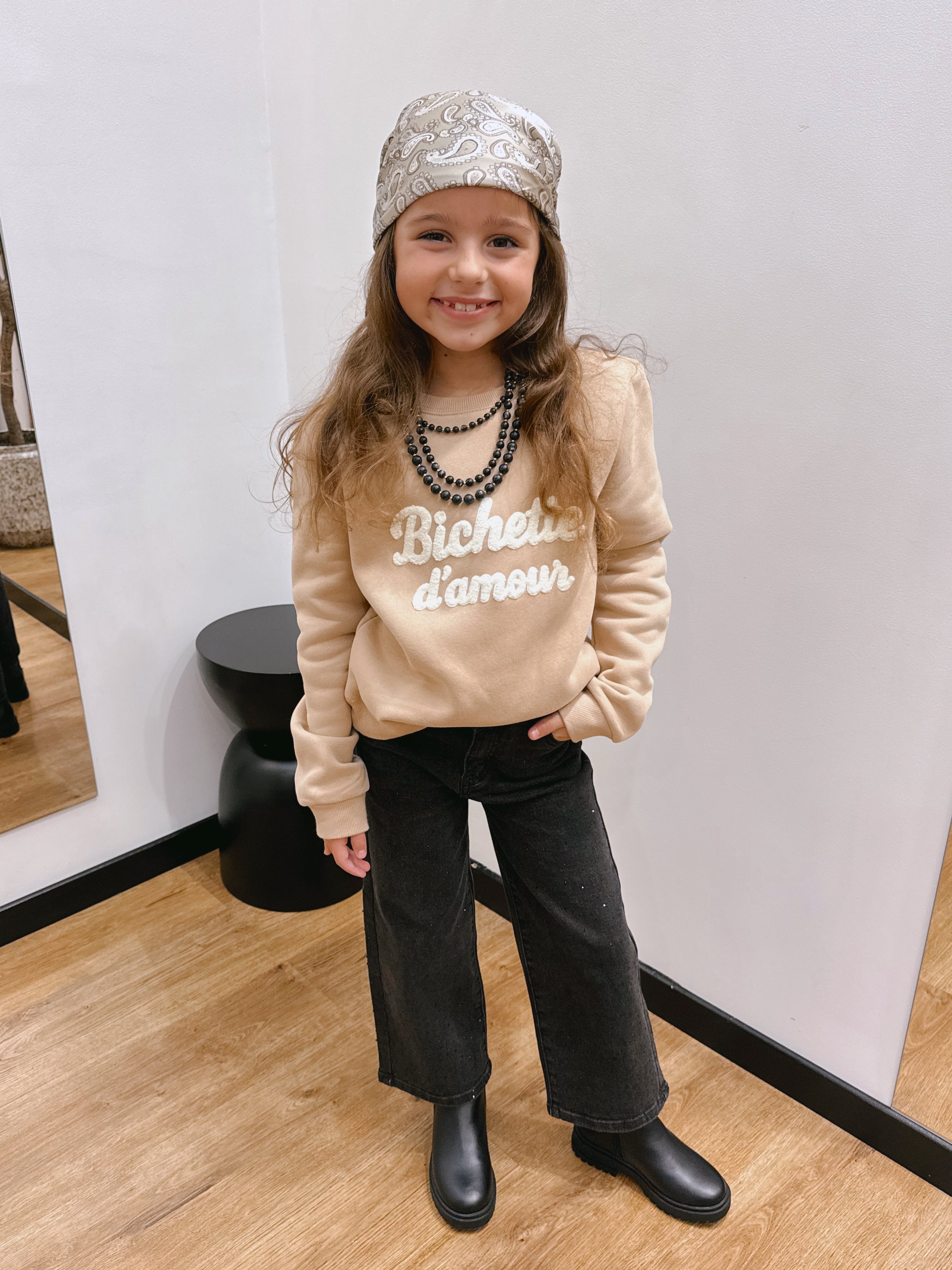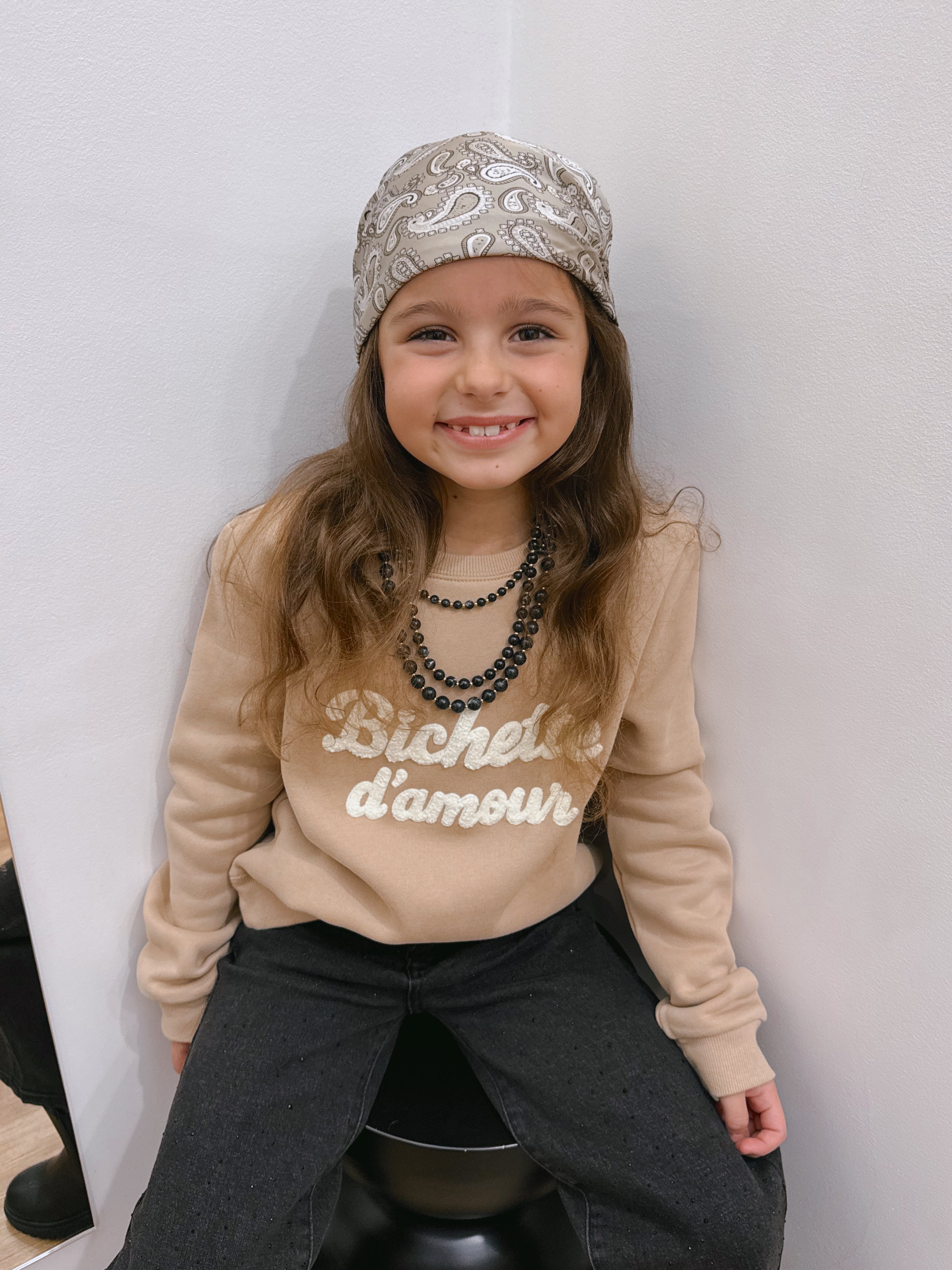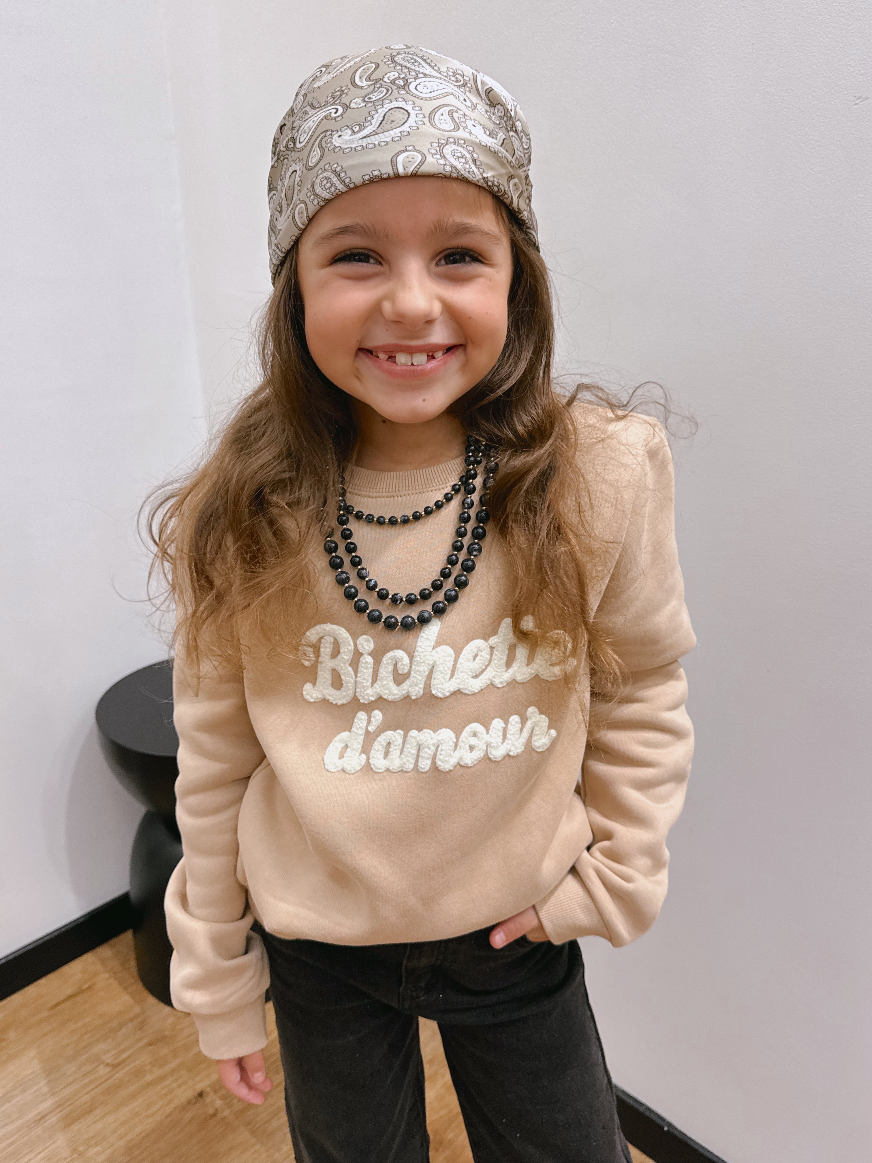 Message "bichette" en sérigraphie peluche écru sur le devant
