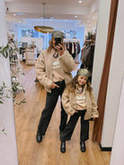 Elle possède deux grandes poches côtés très pratiques, un zip intégral, et une étiquette cœur brodée sur la poitrine qui lui donne une touche à la fois tendre et moderne.