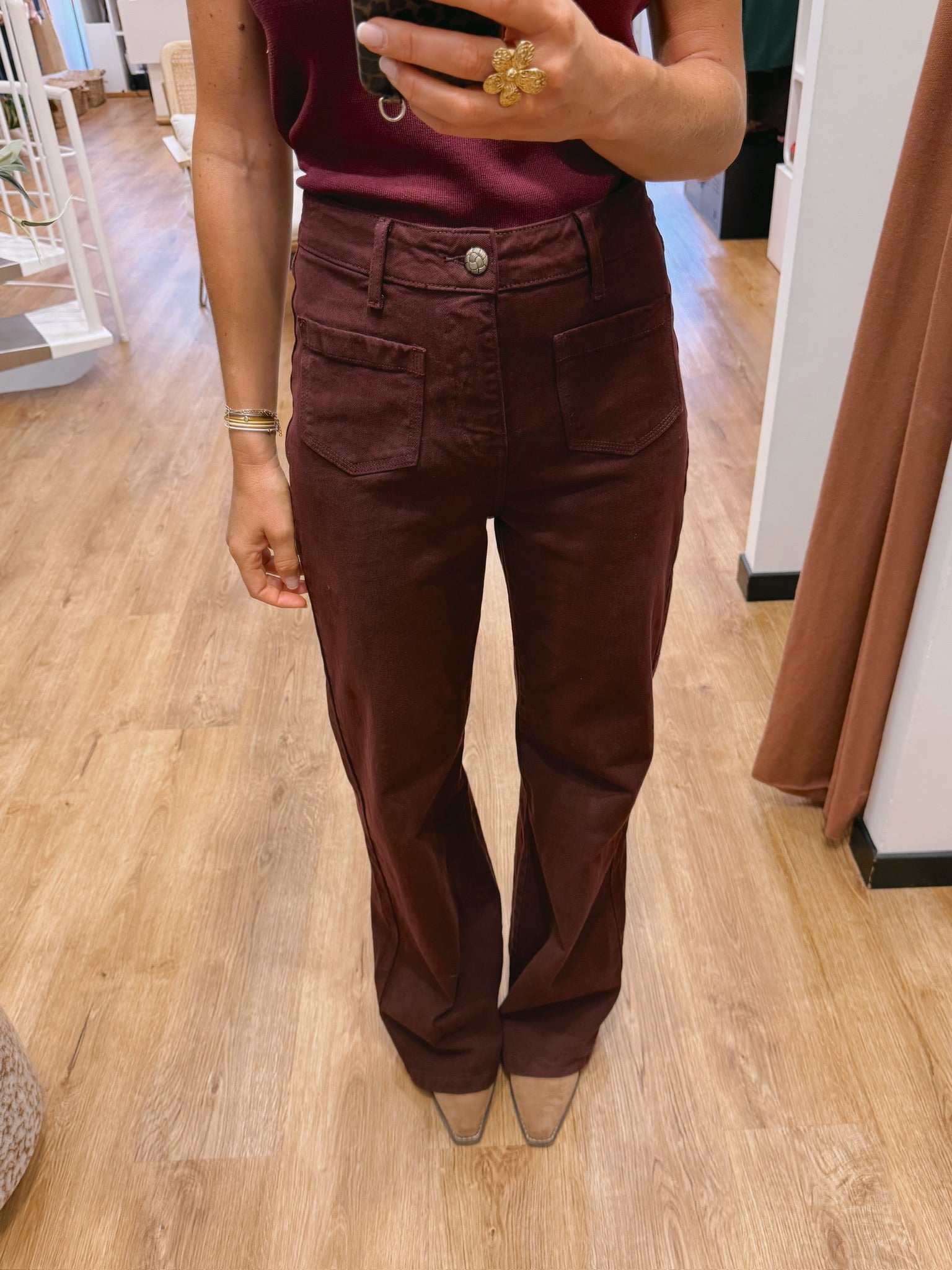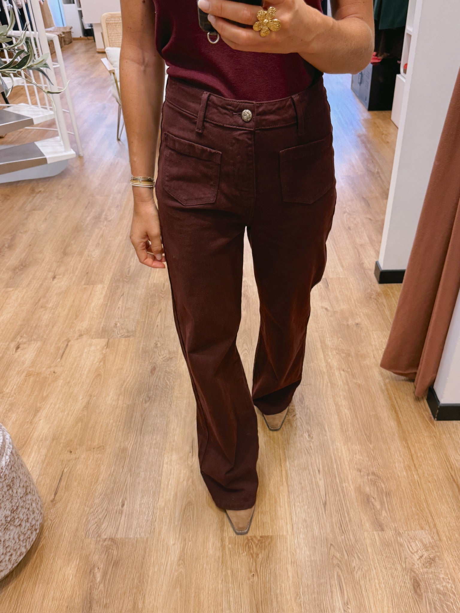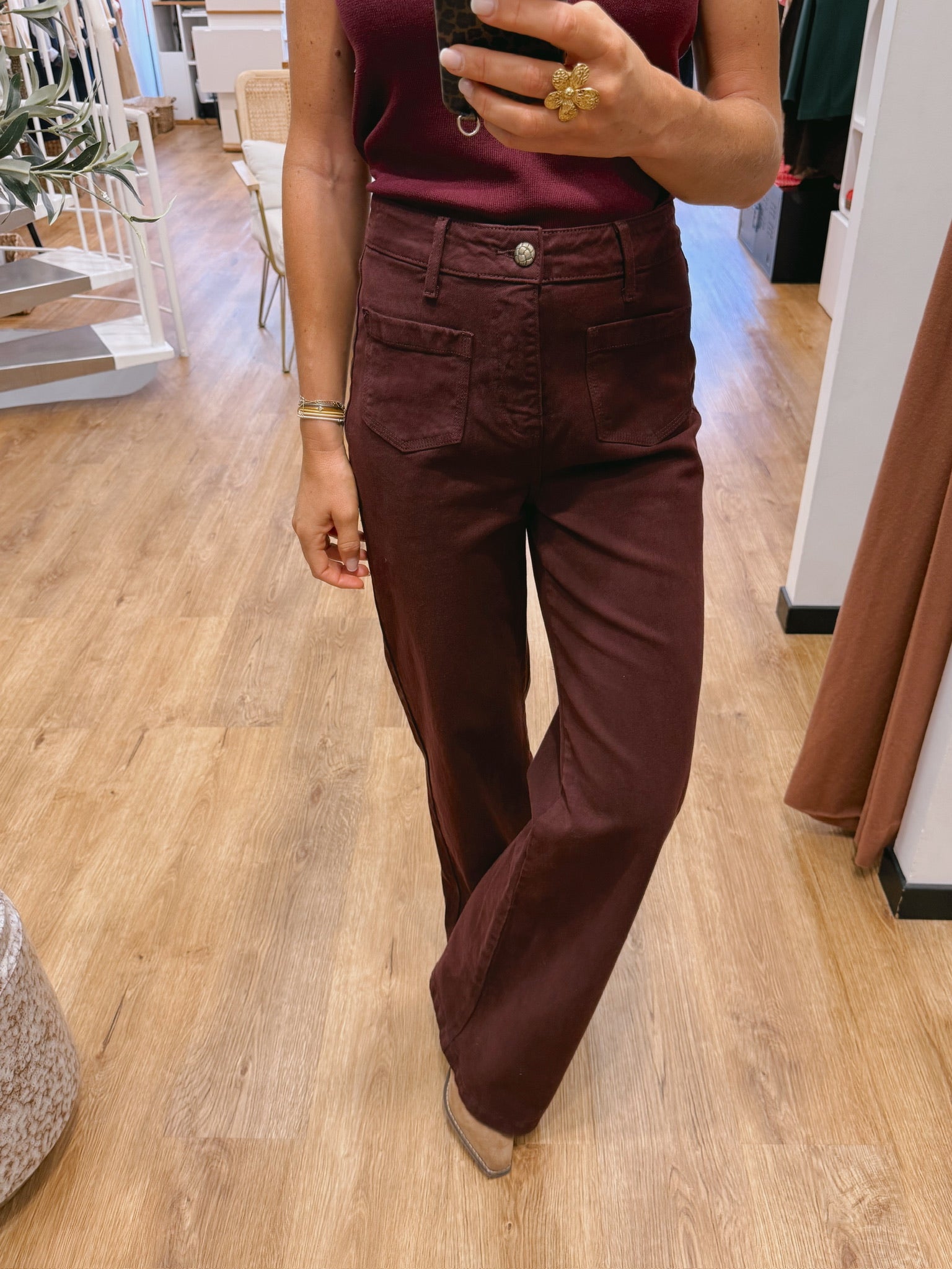La jambe est droite et large du haut jusqu’en bas