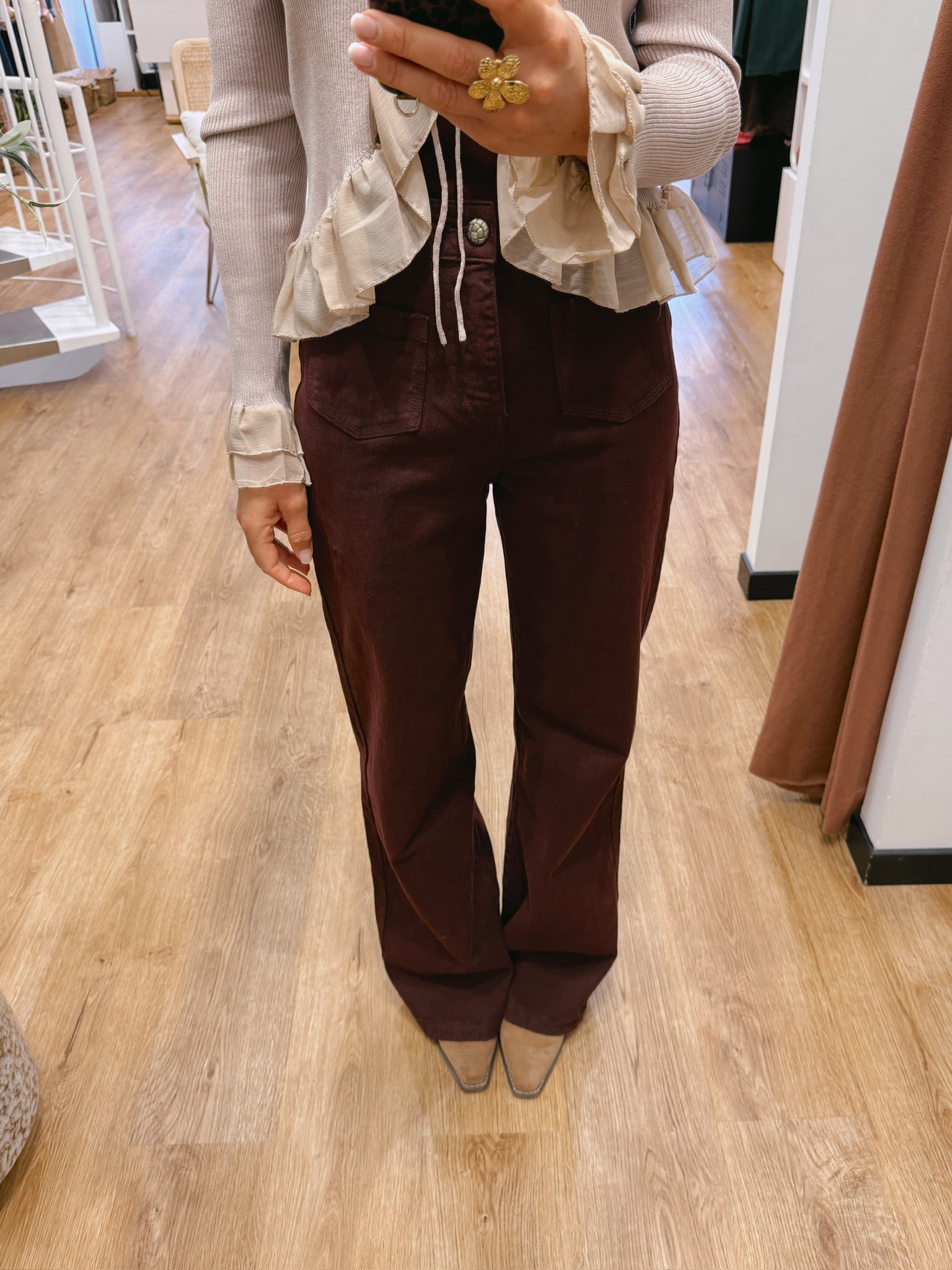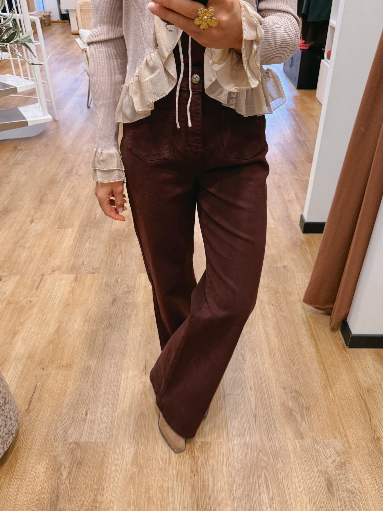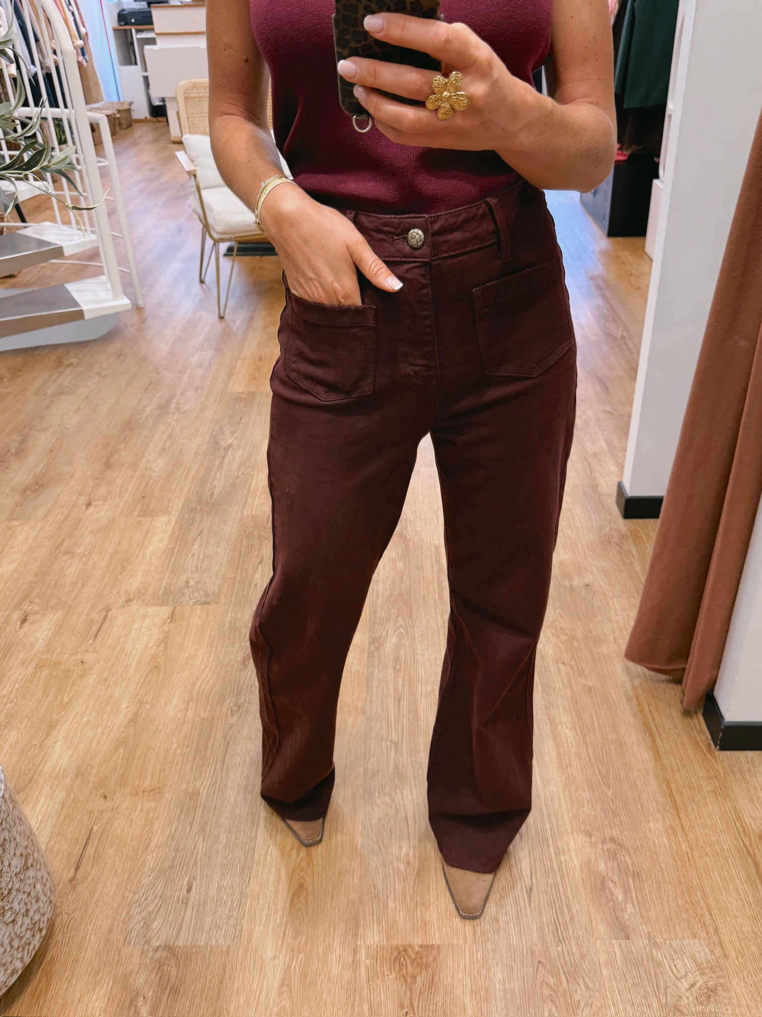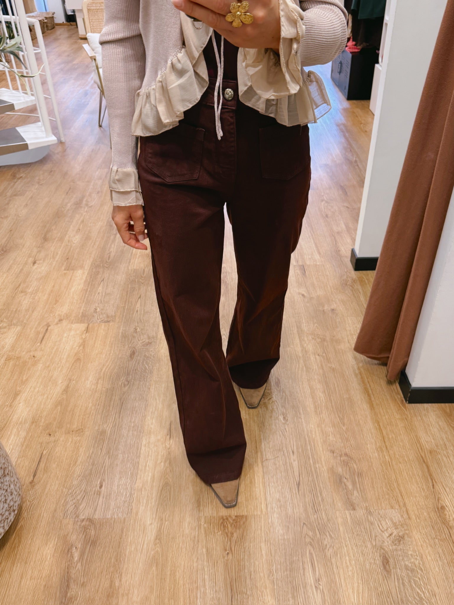 La jambe est droite et large du haut jusqu’en bas