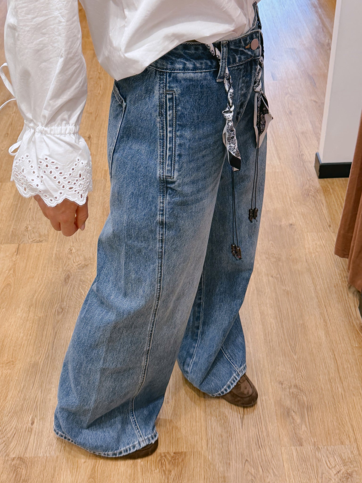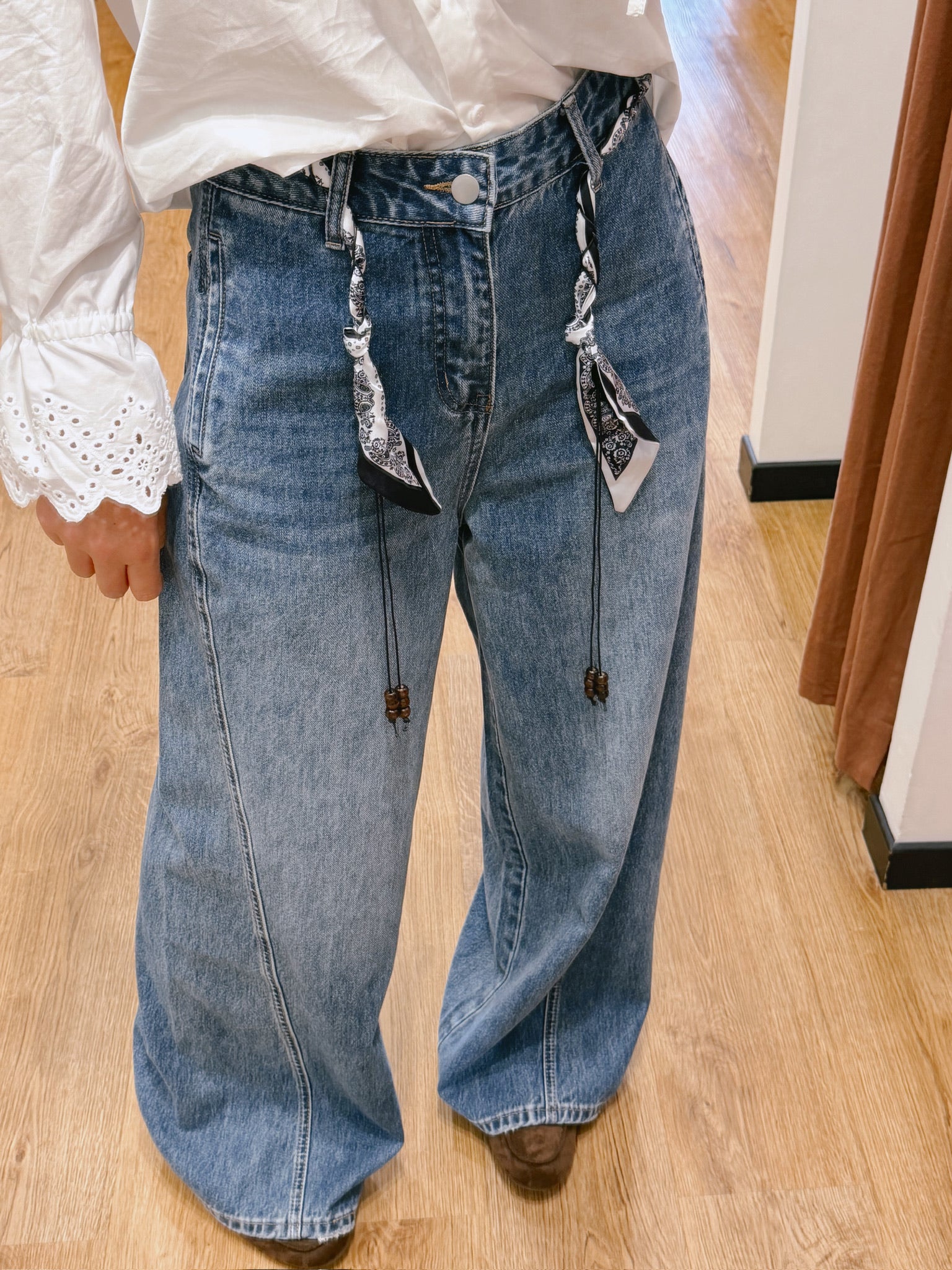 Détails liens bandana décoratifs à la taille, finitions perles