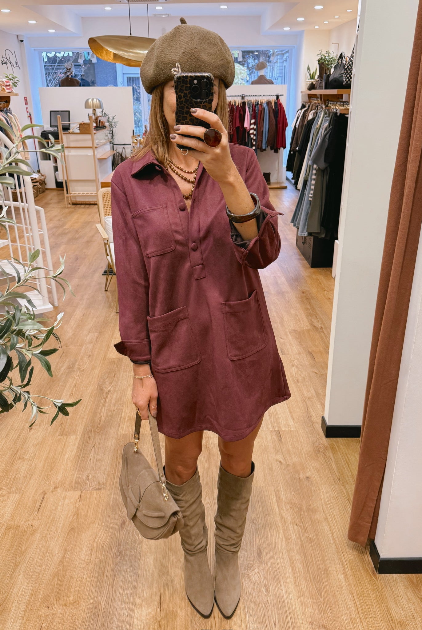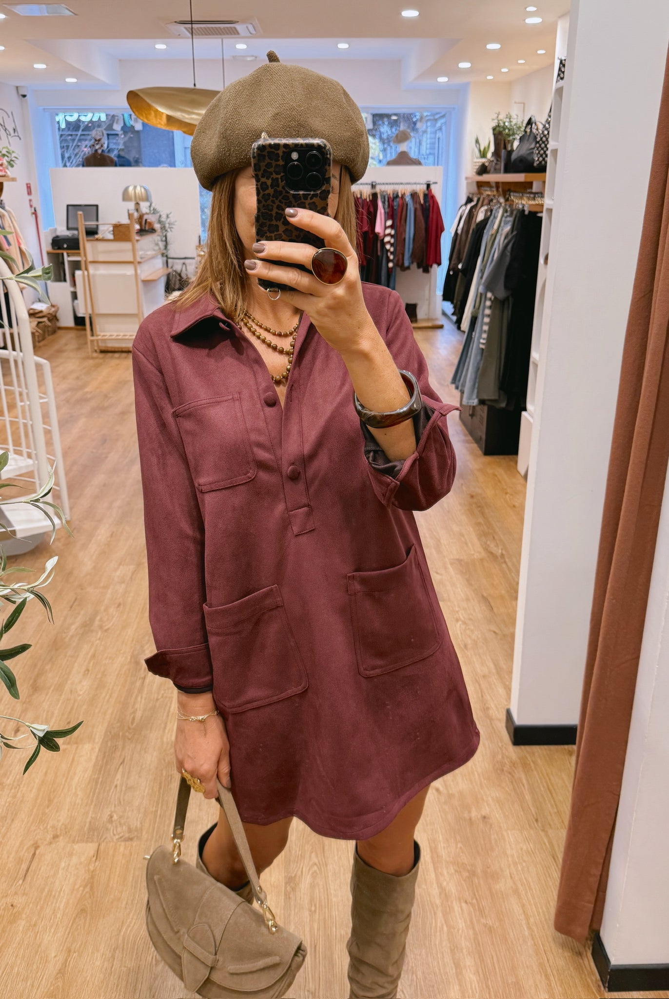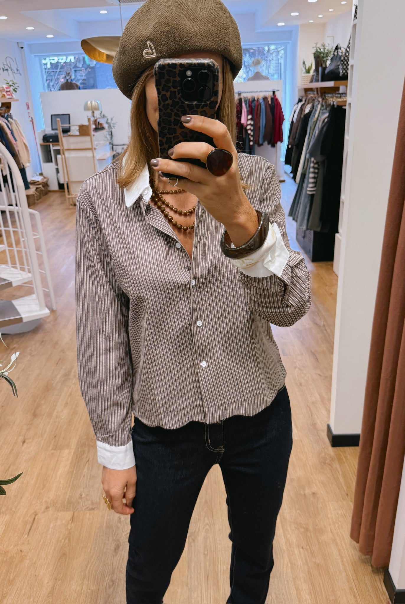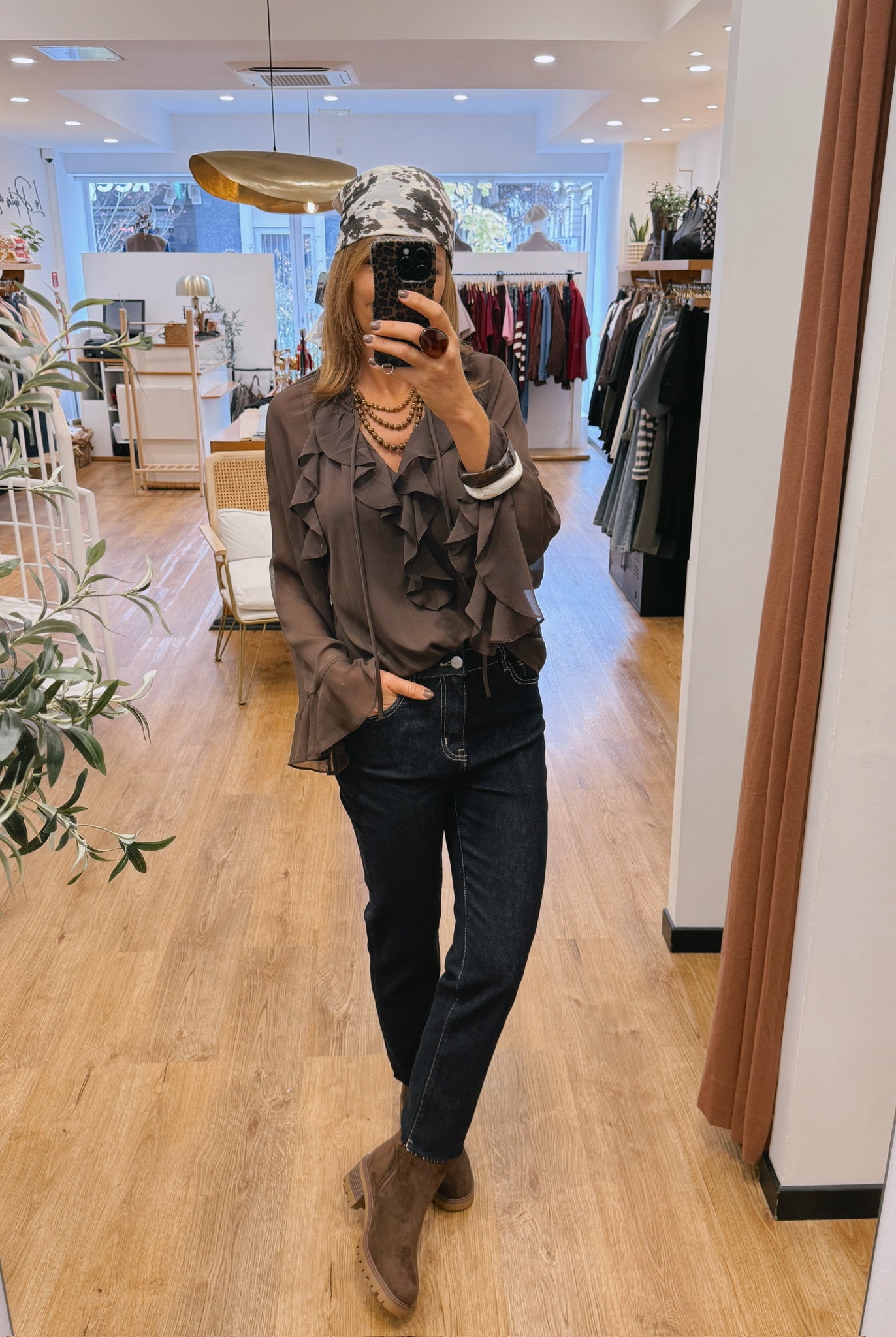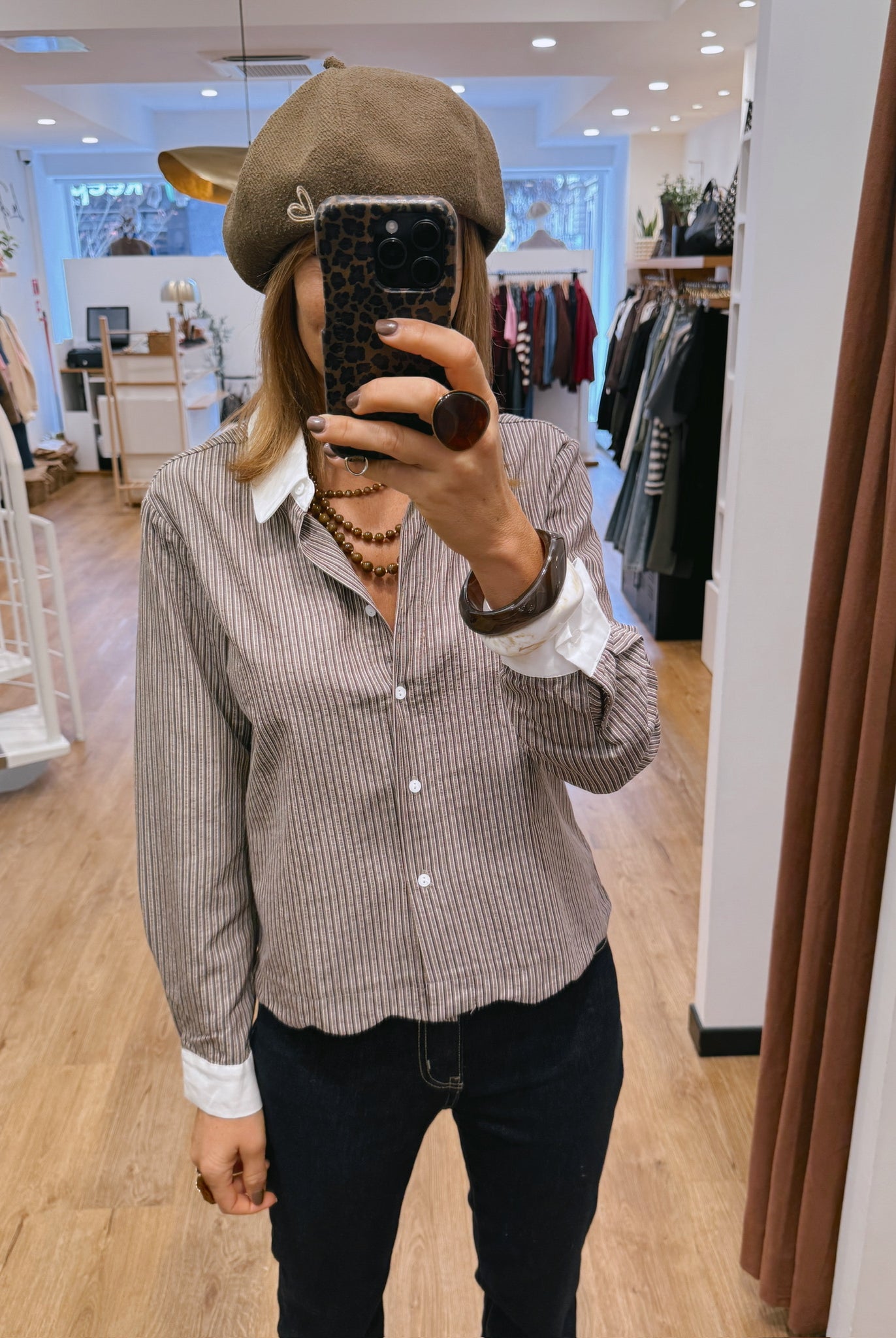 Les looks jouent sur les contrastes : un pull oversize associé à une jupe aérienne, un tailleur en suédine relevé d’un béret, ou encore une blouse fluide qui danse au vent sur un denim parfaitement coupé.