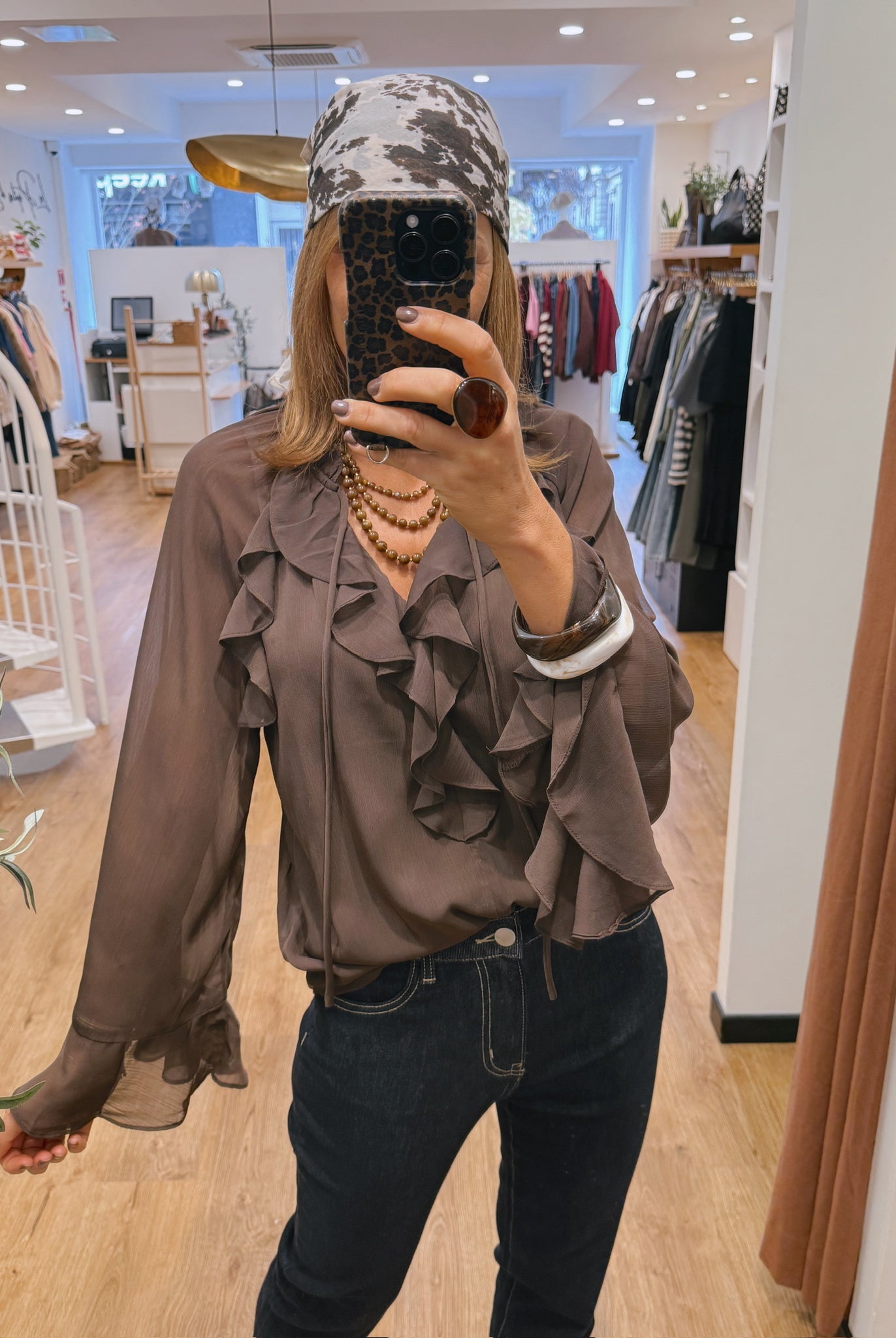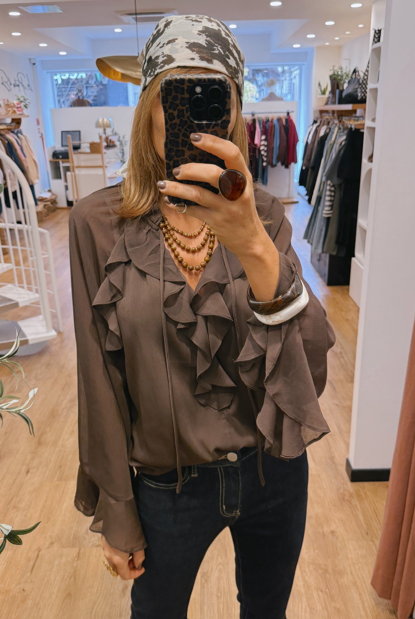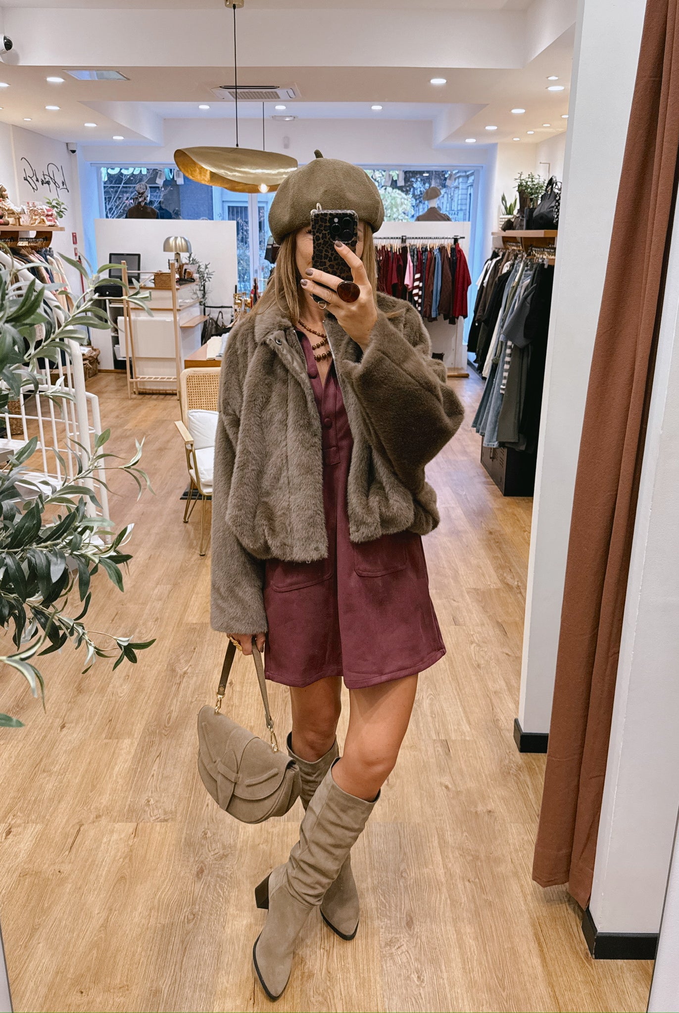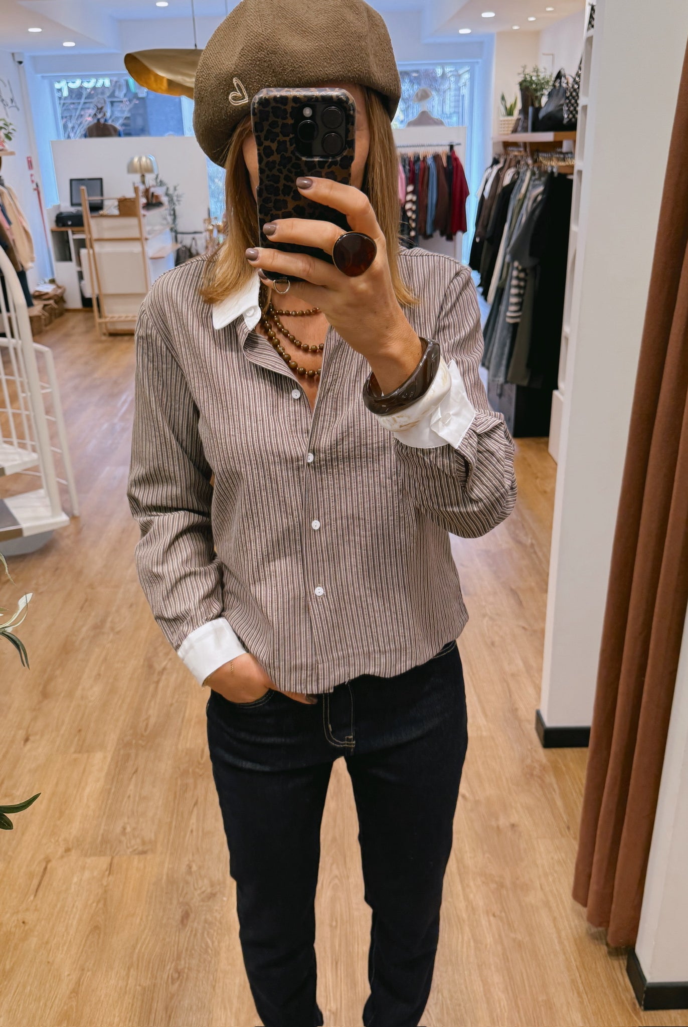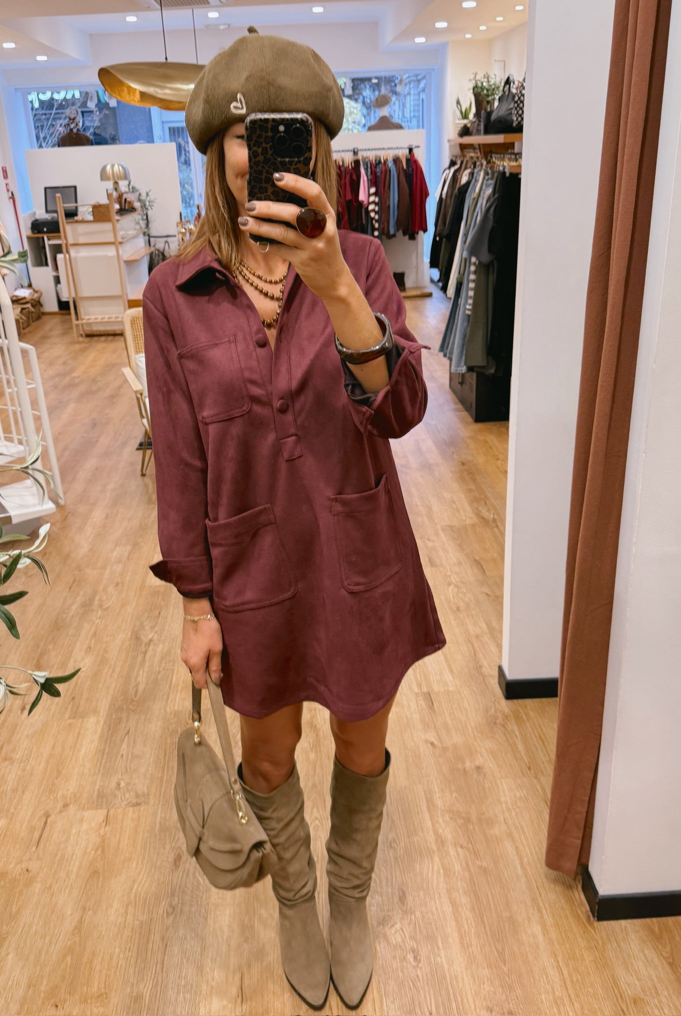 Les looks jouent sur les contrastes : un pull oversize associé à une jupe aérienne, un tailleur en suédine relevé d’un béret, ou encore une blouse fluide qui danse au vent sur un denim parfaitement coupé.