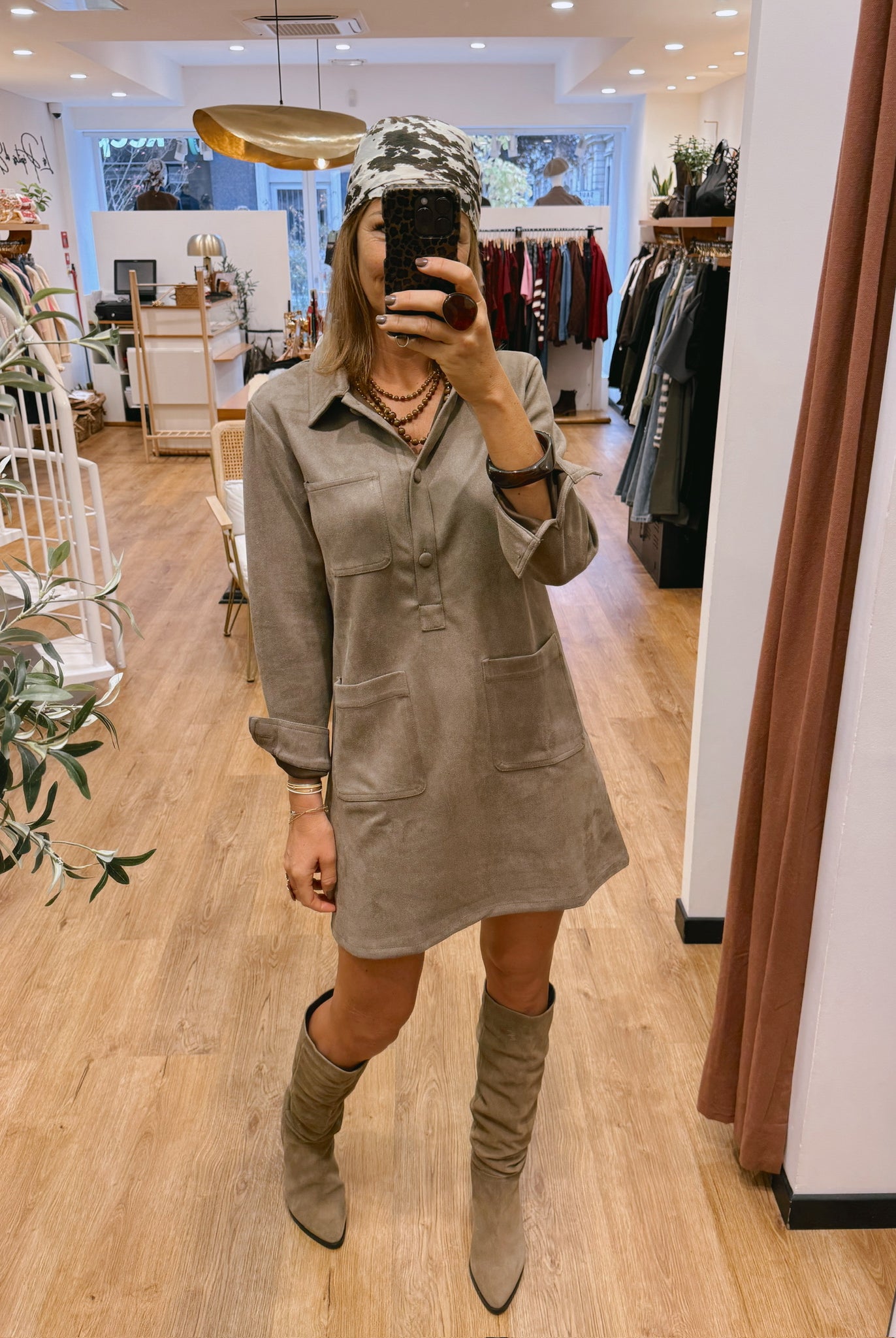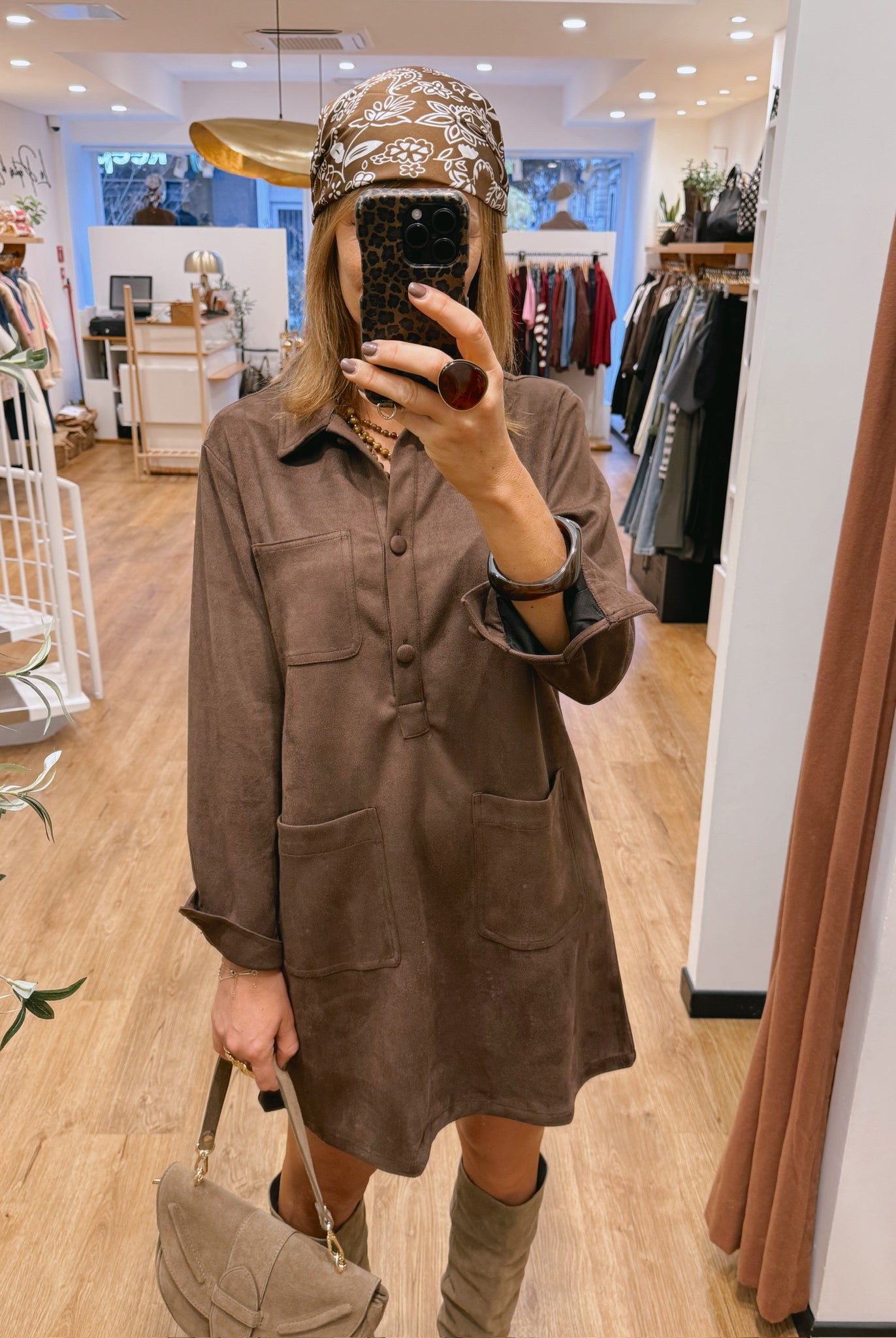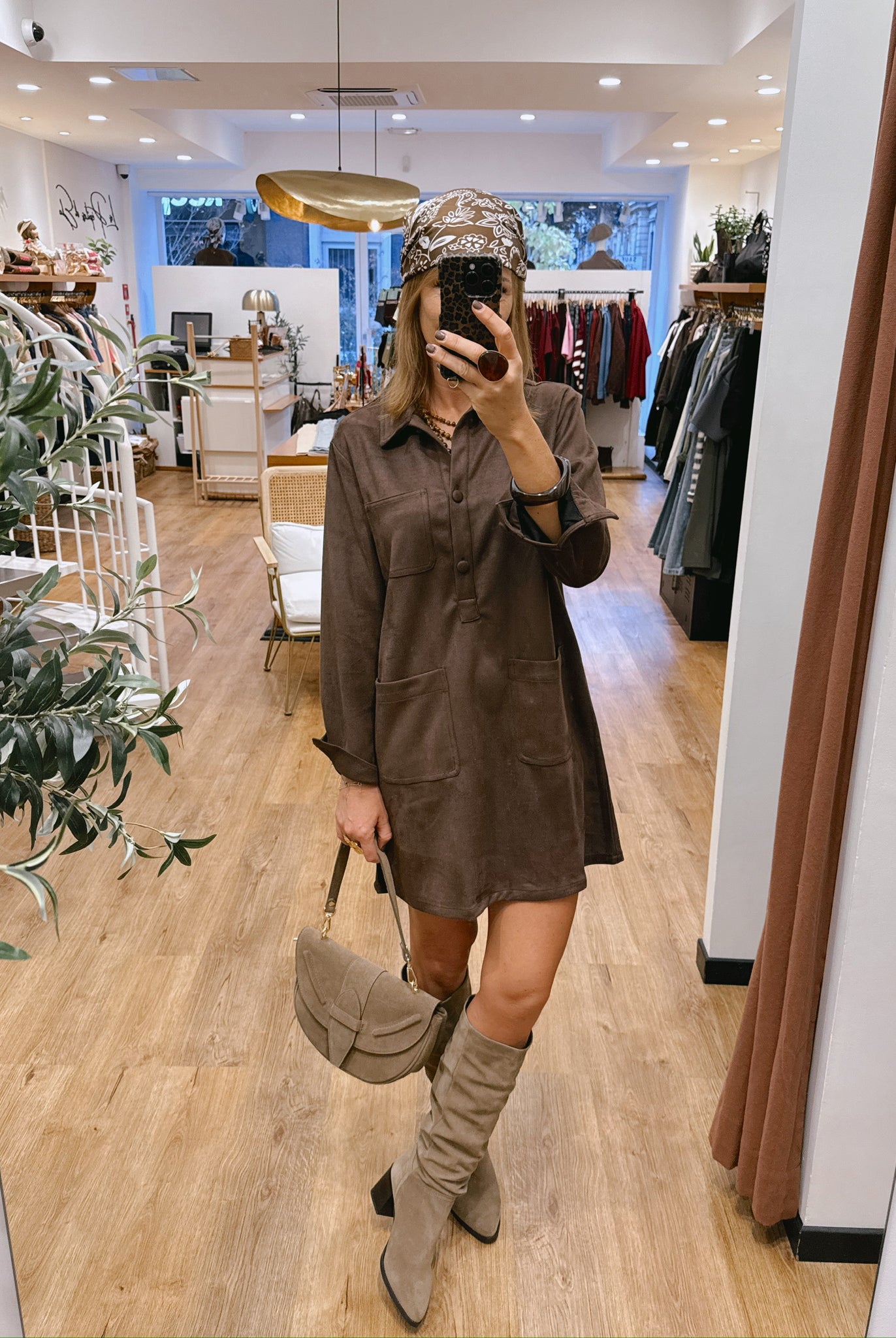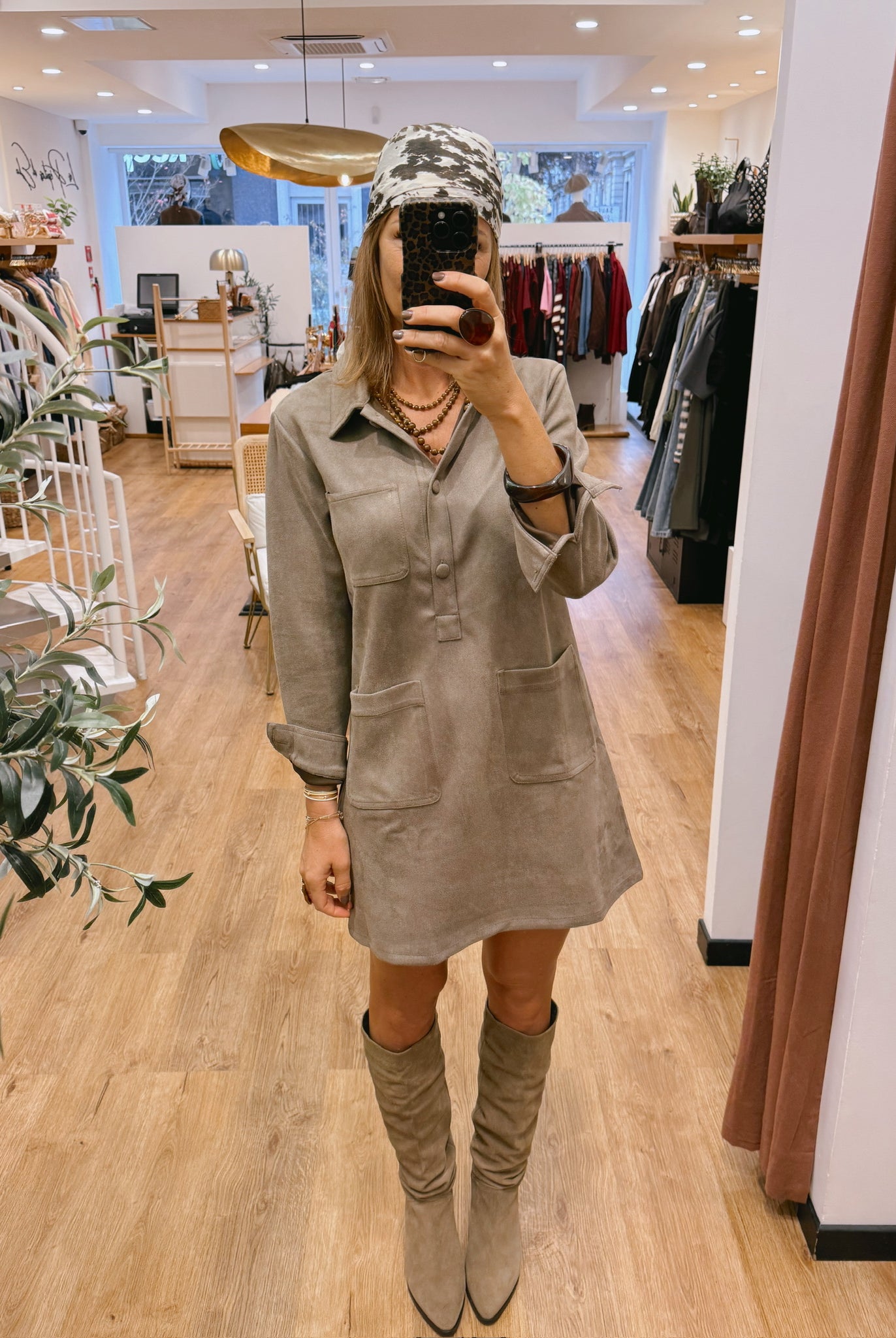 Les silhouettes se parent de nuances naturelles : taupe, beige, brun rosé et kaki se mêlent dans une harmonie apaisante.