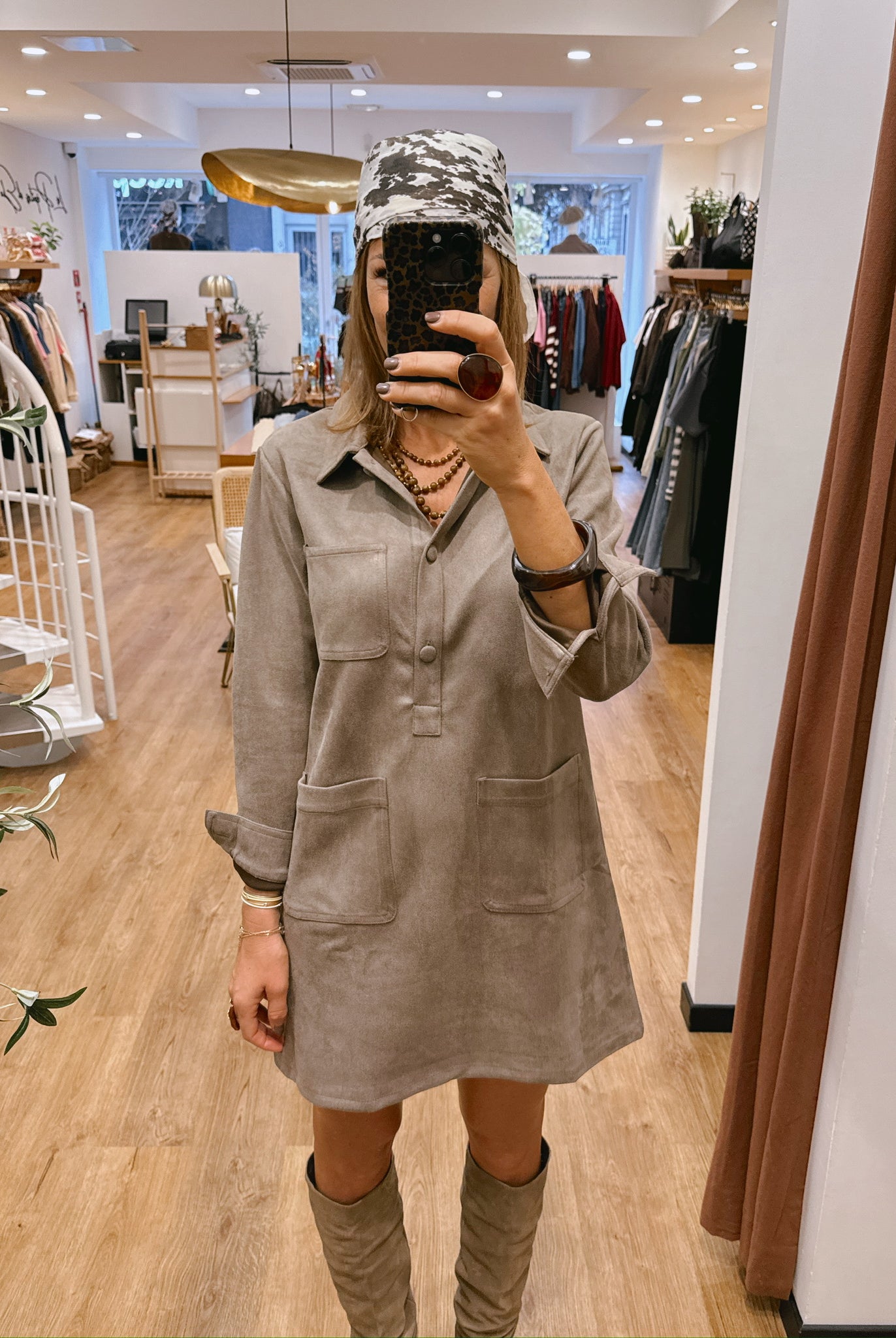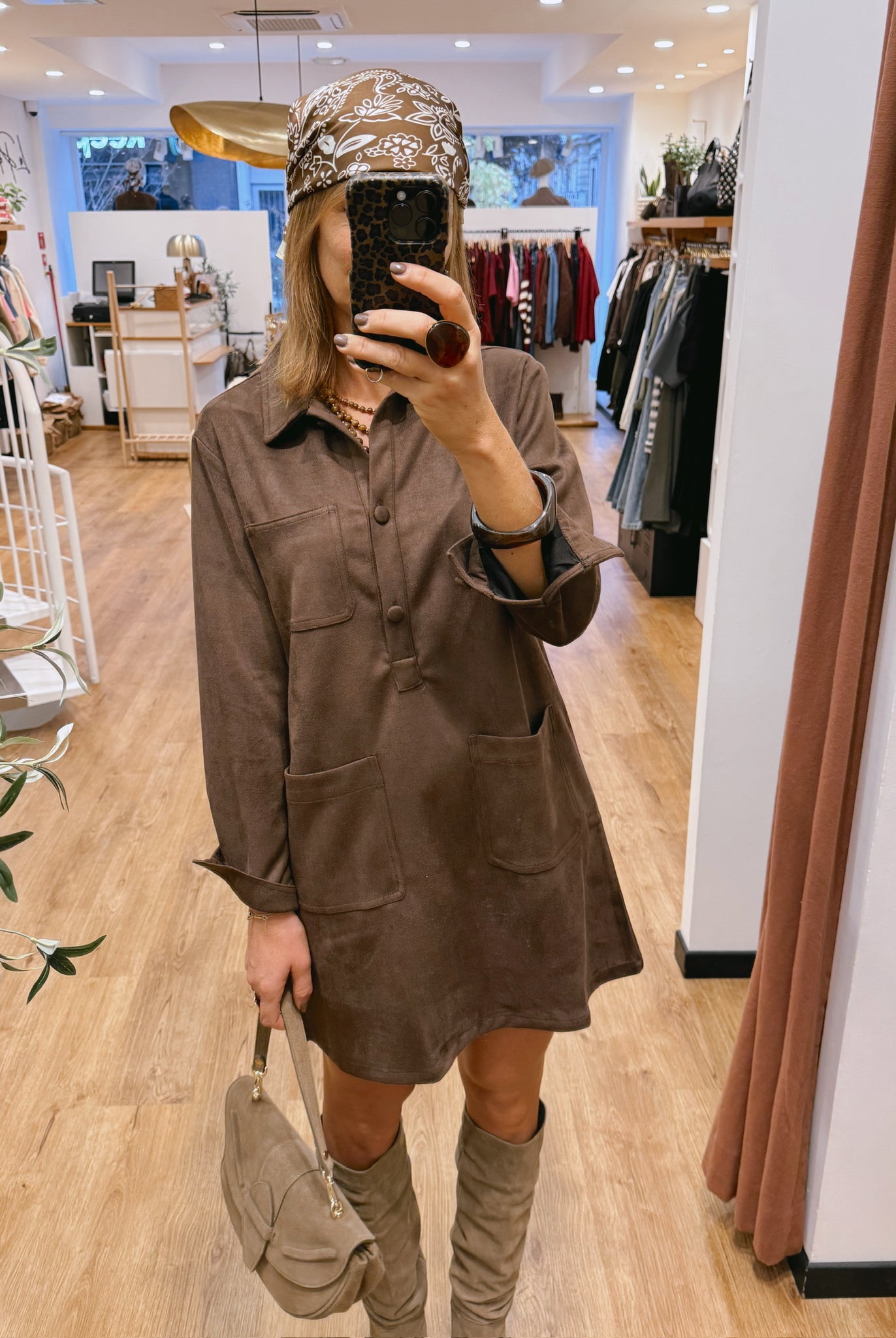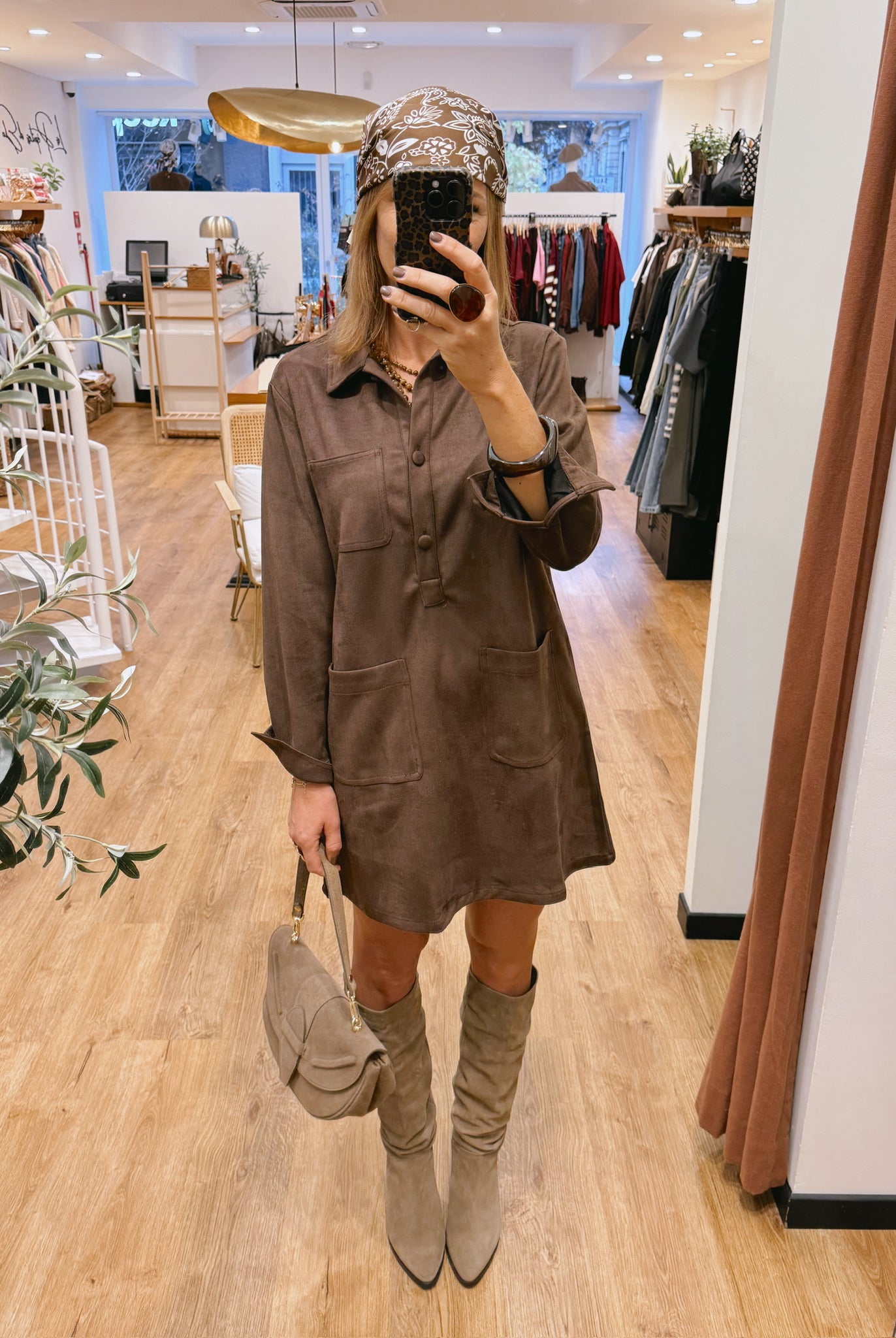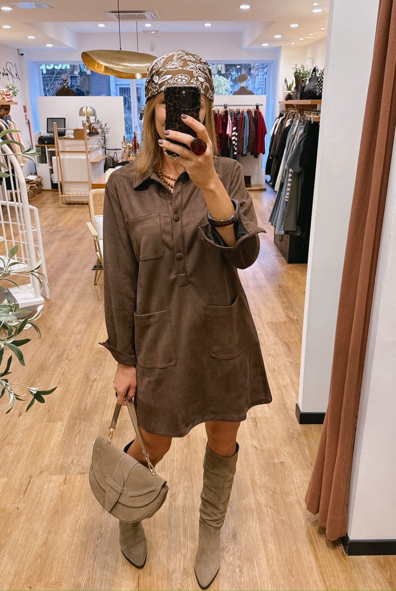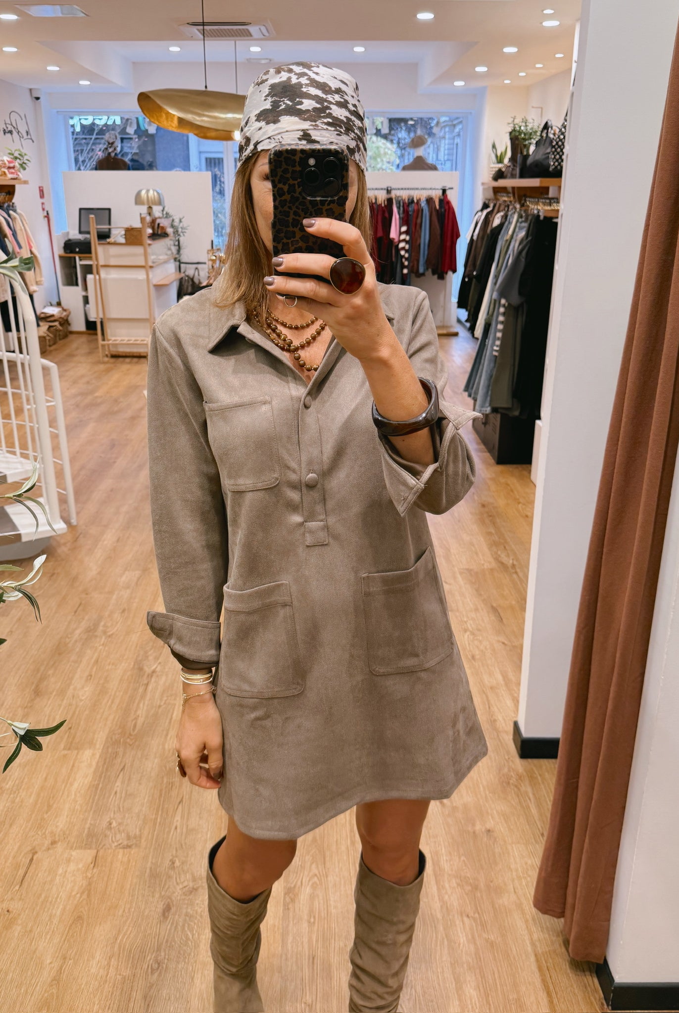 Les silhouettes se parent de nuances naturelles : taupe, beige, brun rosé et kaki se mêlent dans une harmonie apaisante.