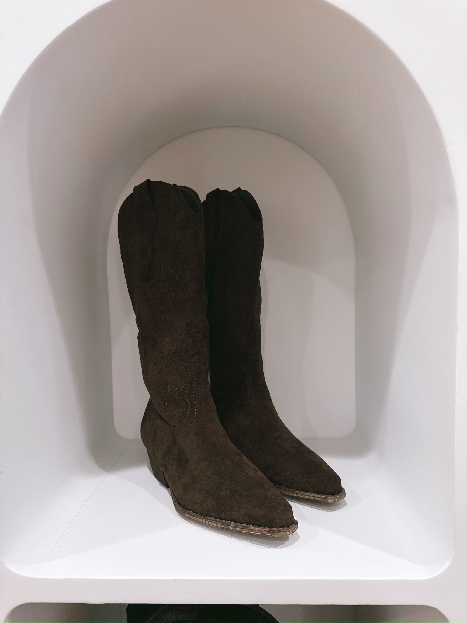 Daim marron foncé, au toucher doux et à l’aspect légèrement velouté.