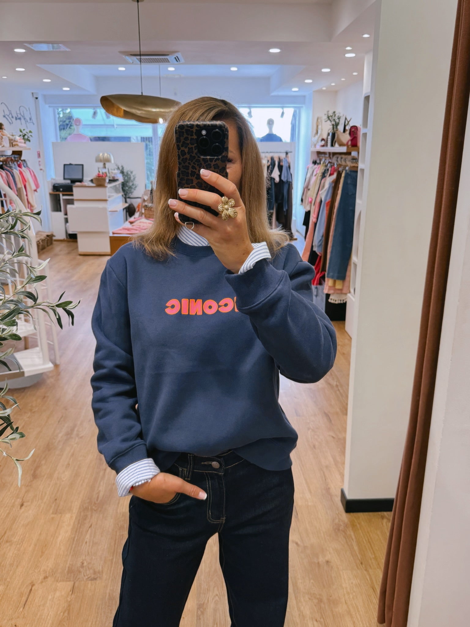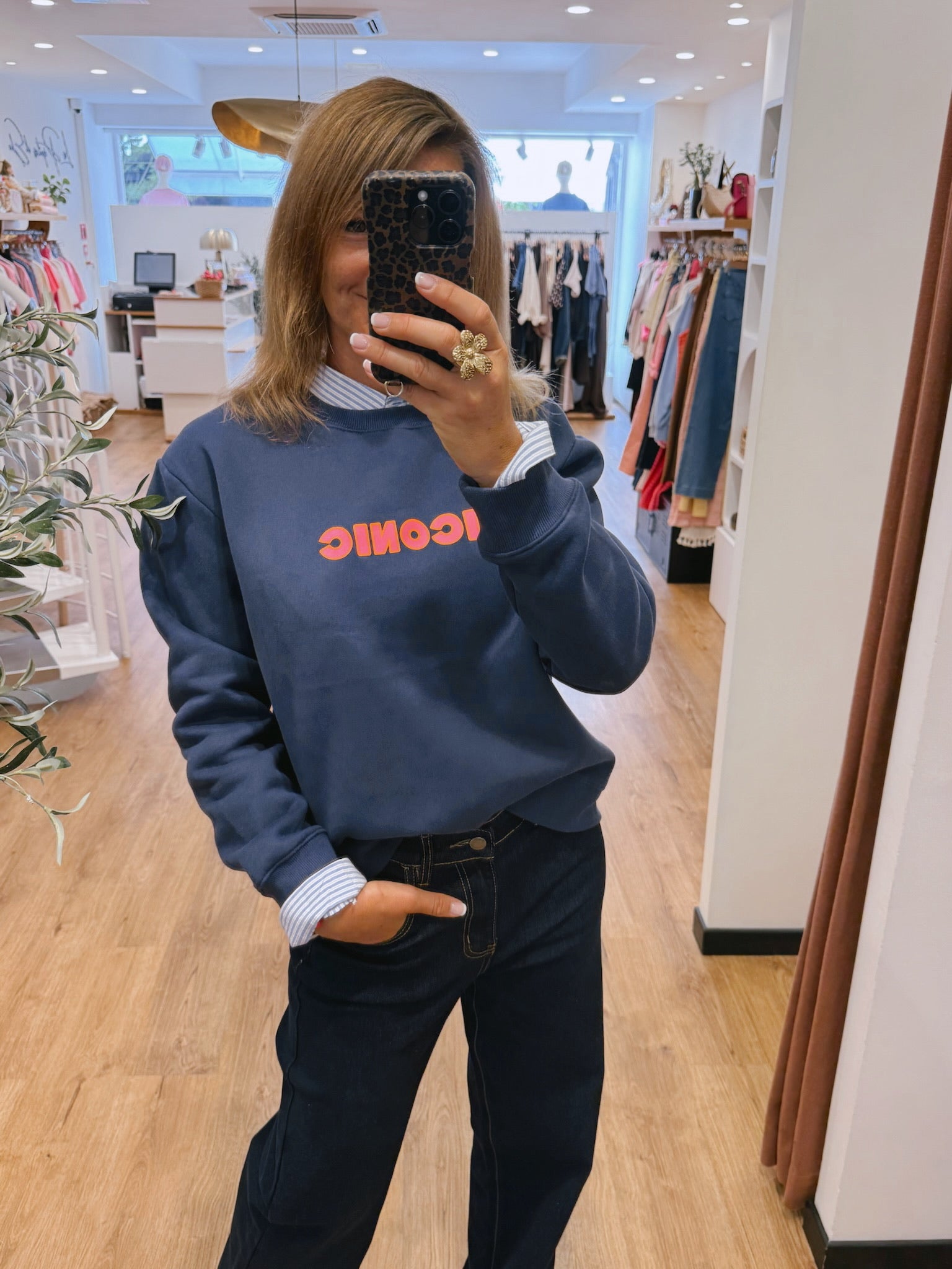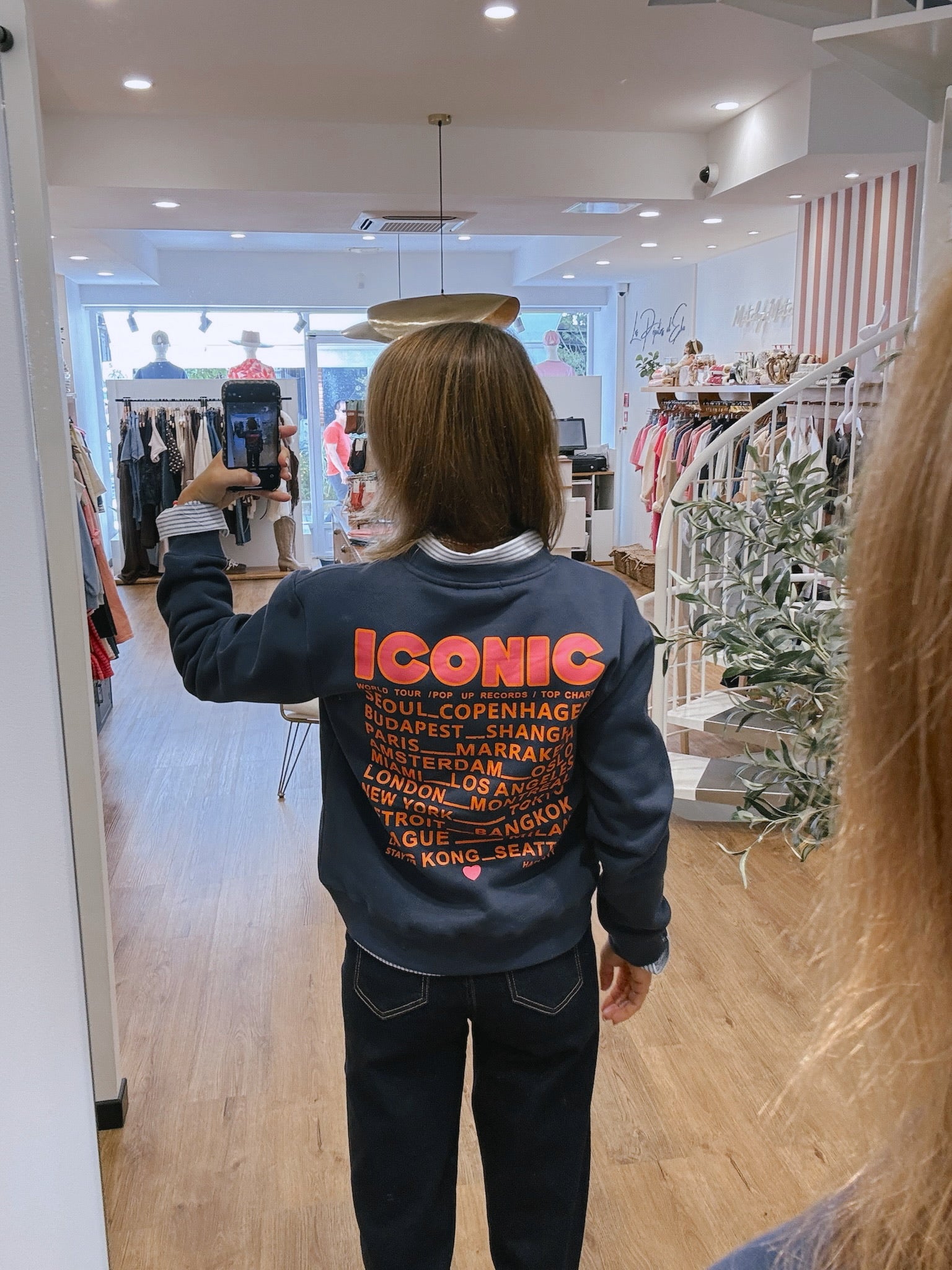 Message "Iconic" en sérigraphie rose sur le devant et plusieurs dans le dos
