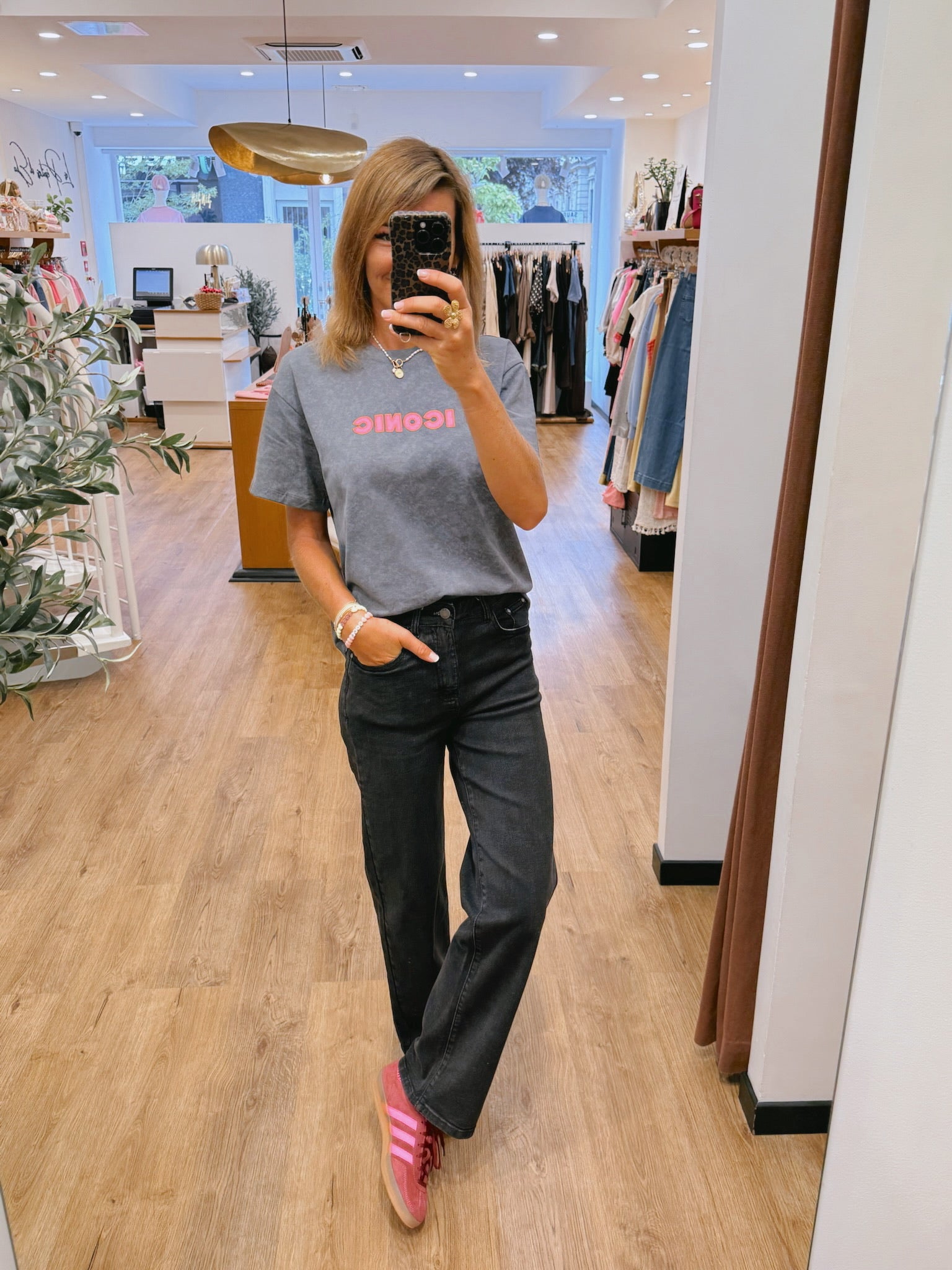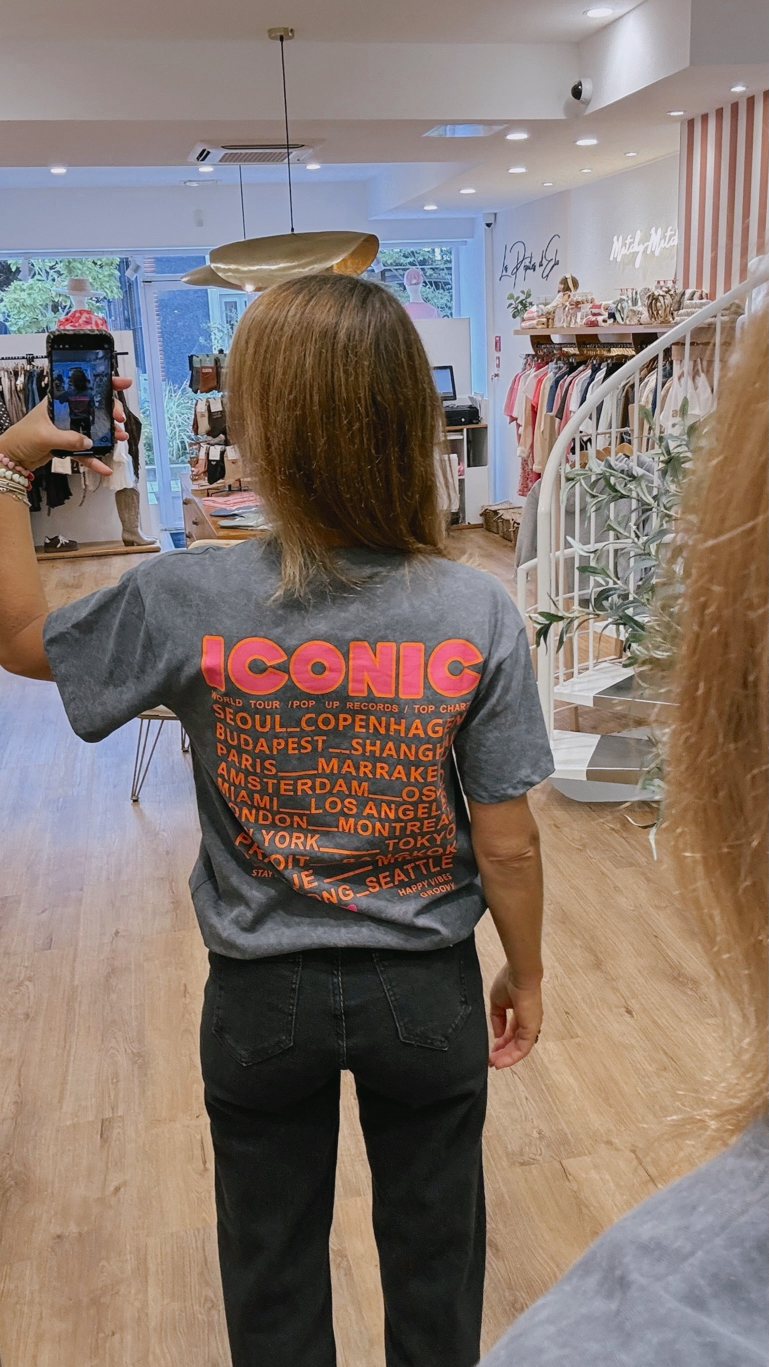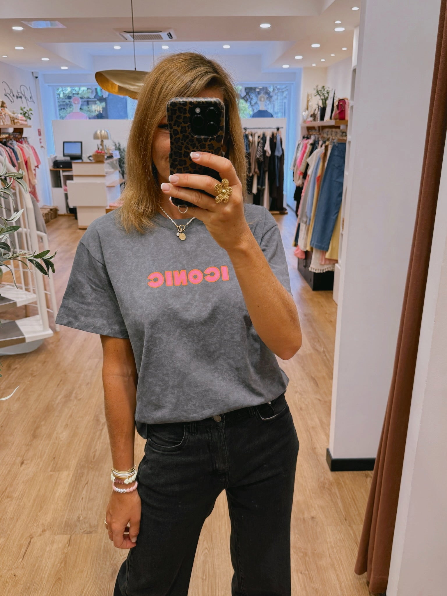 Message "Iconic" en sérigraphie rose sur le devant et plusieurs dans le dos