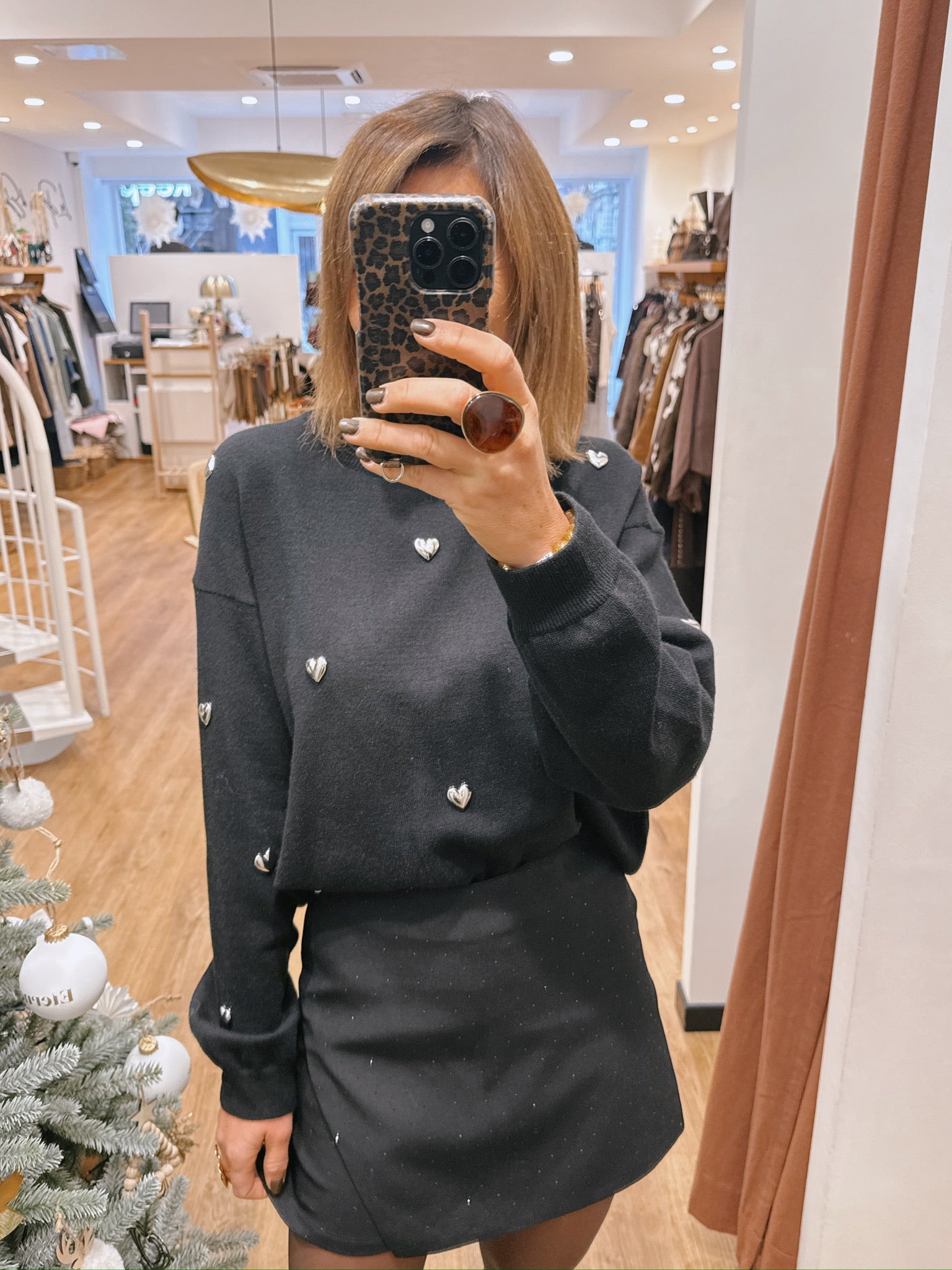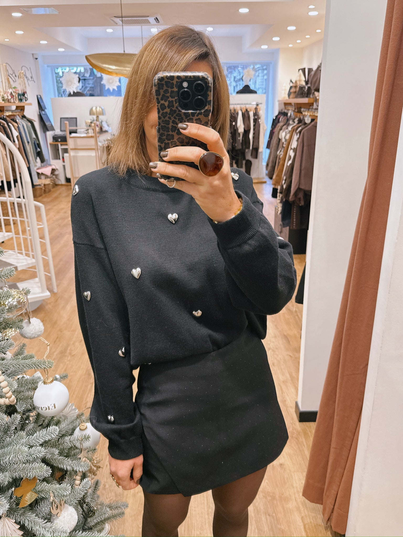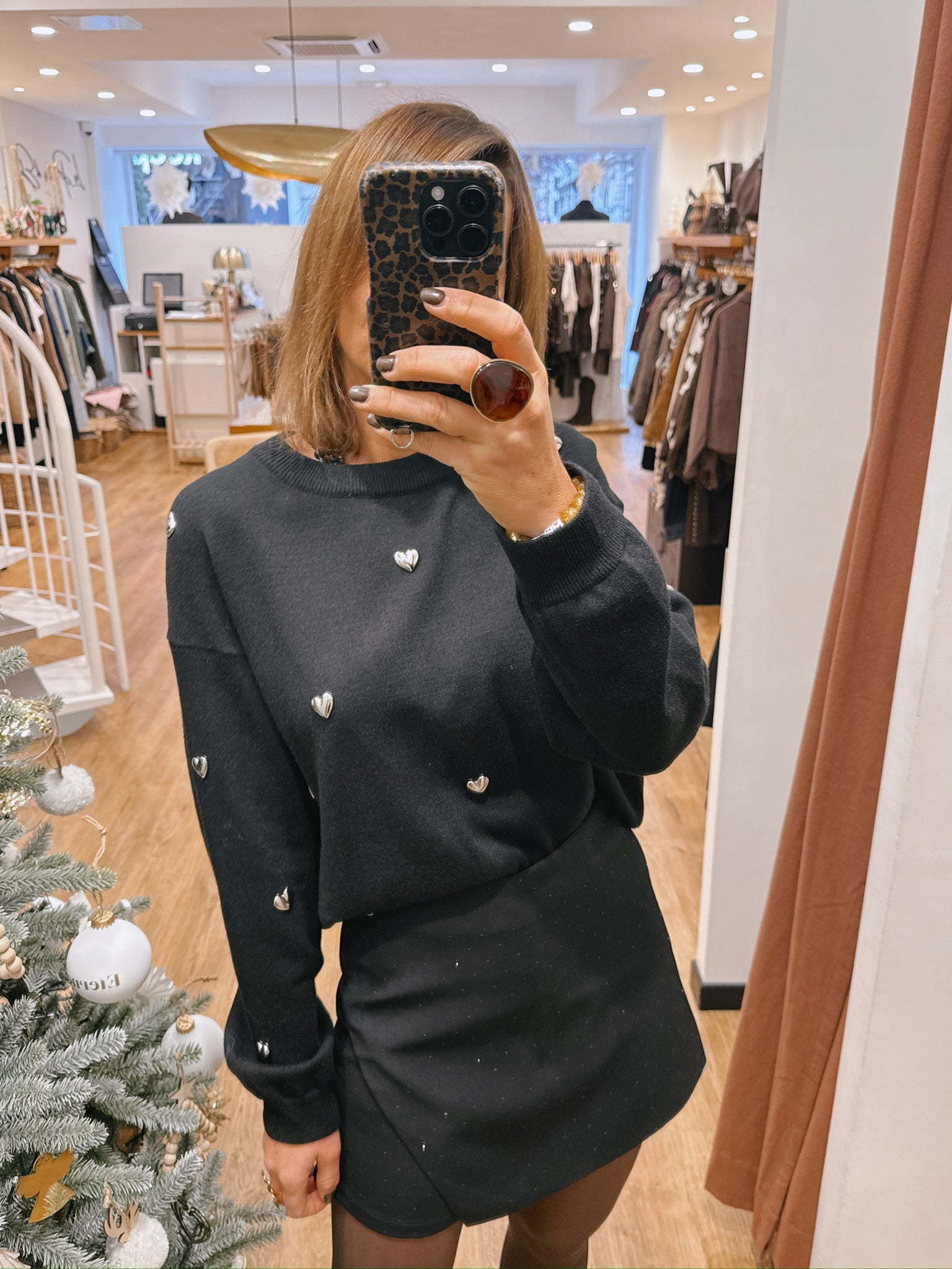 Détails petits cœurs métalliques pression sur le devant et les manches